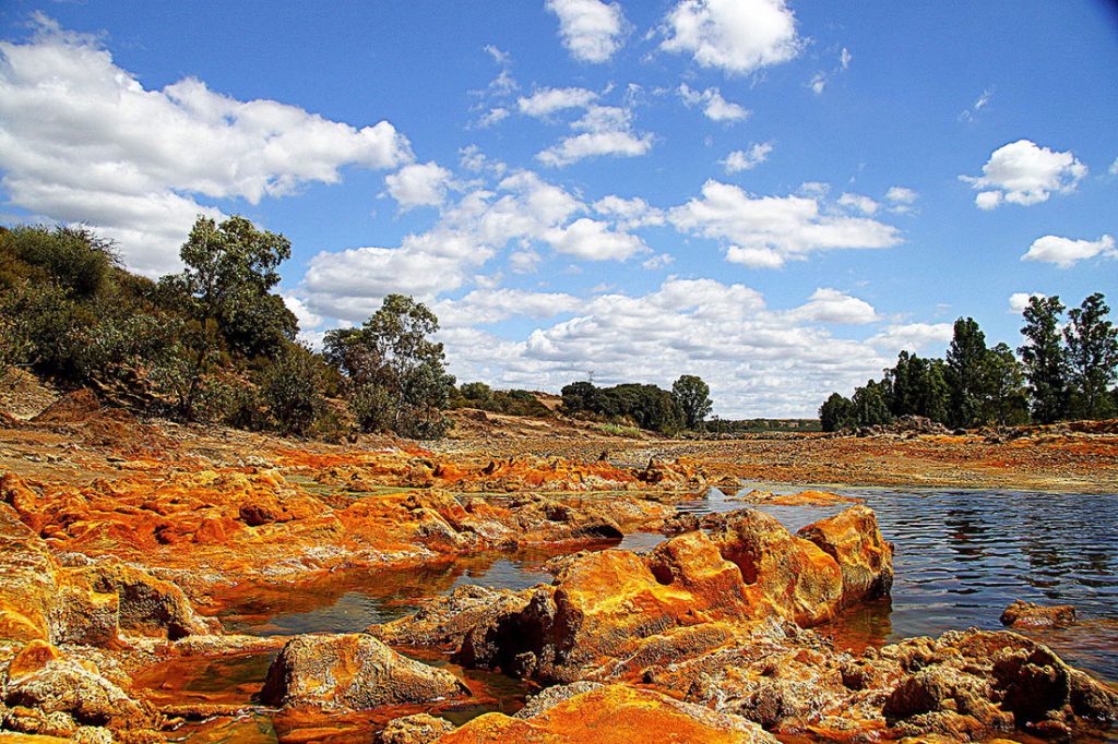 Эта река насыщена железом и тяжелыми металлами, повышающими кислотность ее воды. Однако в этой среде хорошо живут бактерии, которые окисляют металлы и создают характерный красноватый цвет реки.