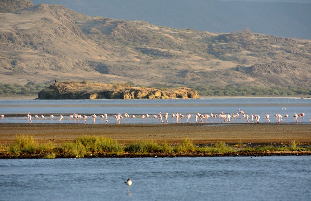Это одно из самых соленых и щелочных озер в мире. В некоторых местах температура воды достигает 50°C. Такие условия непригодны для большинства животных и растений: в озере обитает всего 3 вида рыб.