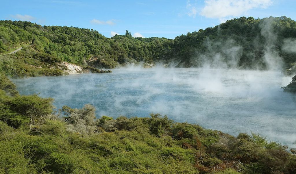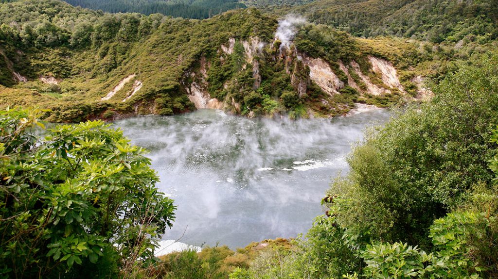 Тихое и спокойное на первый взгляд озеро Сковорода является одним из самых больших горячих бассейнов в мире. Температура его кислой воды в течение всего года колеблется от 50°С до 60°С, а на поверхности можно увидеть пар из углекислого газа и различных сероводородов. Это уникальное озеро не только слишком горячее для купания: оно содержит половину таблицы Менделеева.