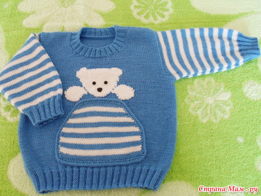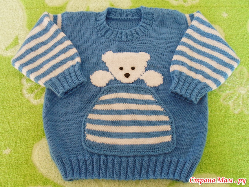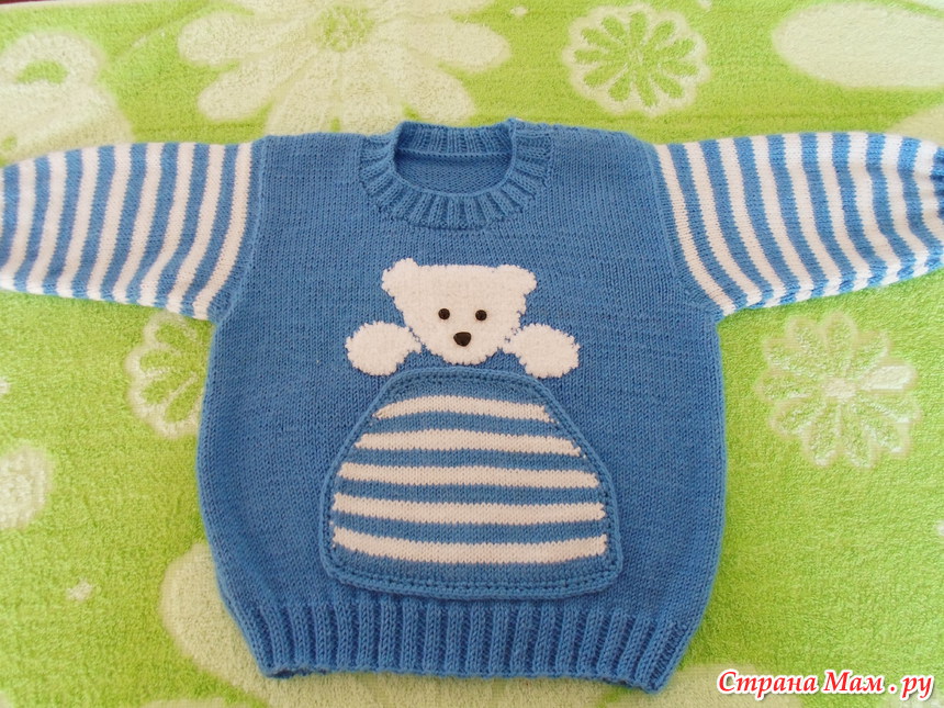 Свитерок вязала на вырост, получился года на 2, хотя это зависит от того, каким вырастет внук, ведь сейчас ему всего 2 месяца.