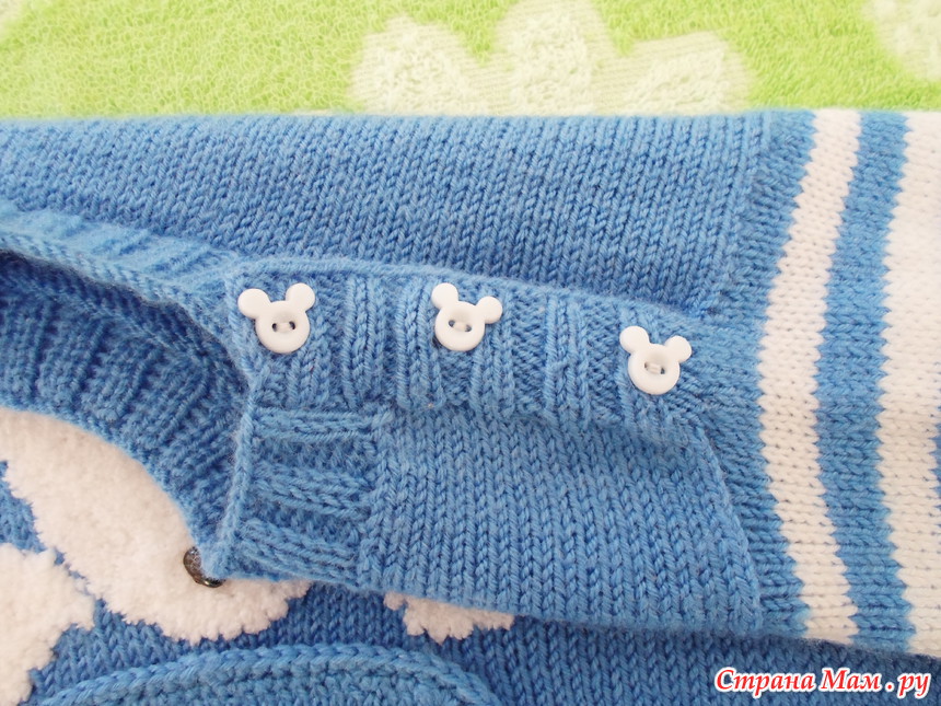 Застёжку сделала на плечике, помня, как не любят дети одевать кофточки через голову