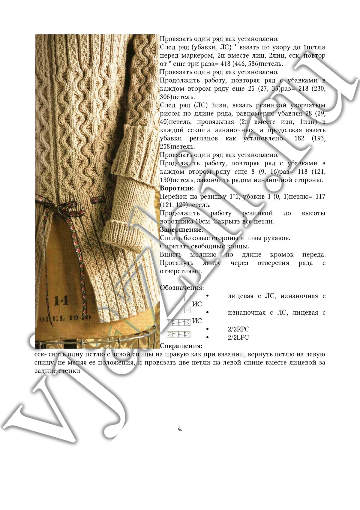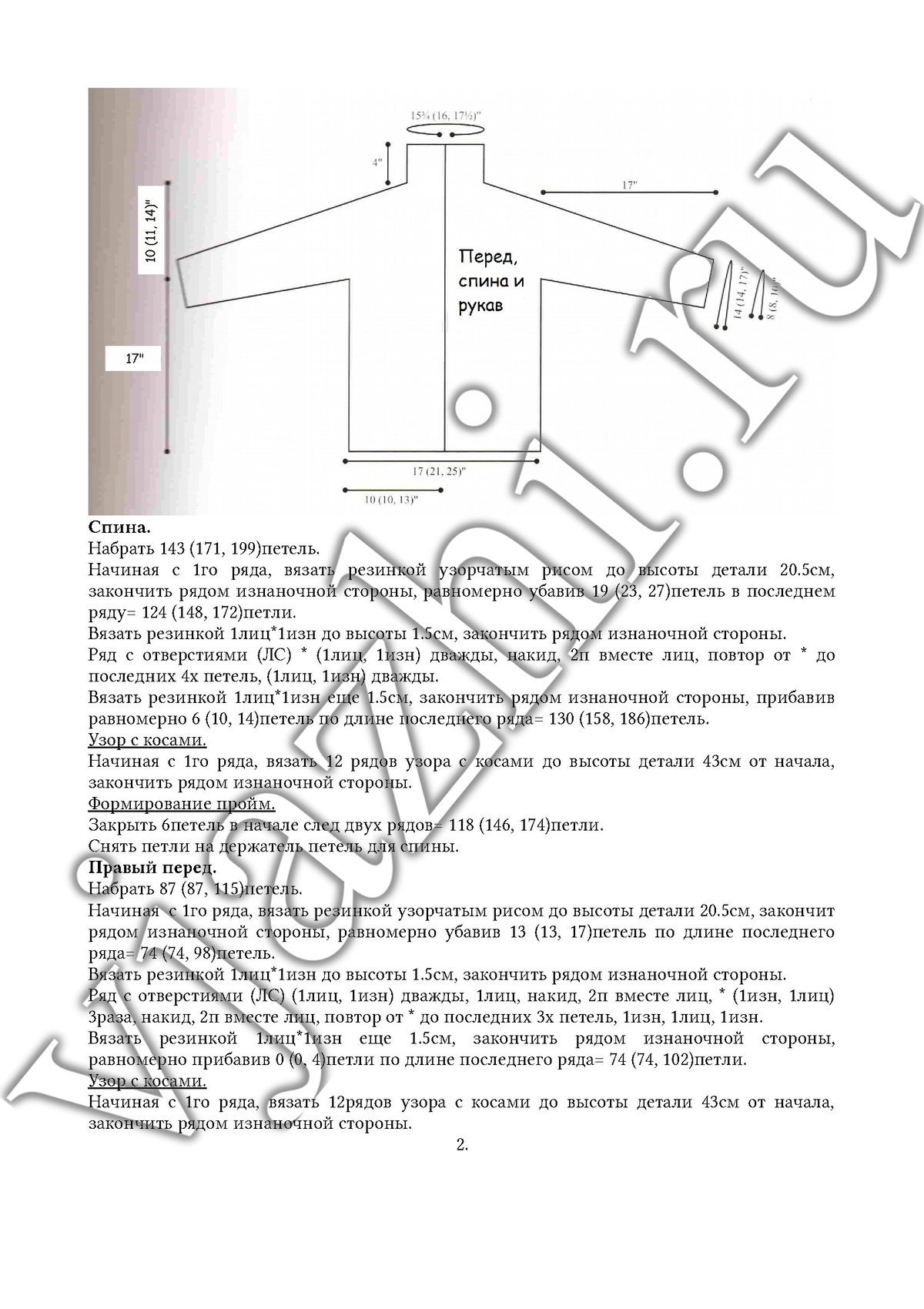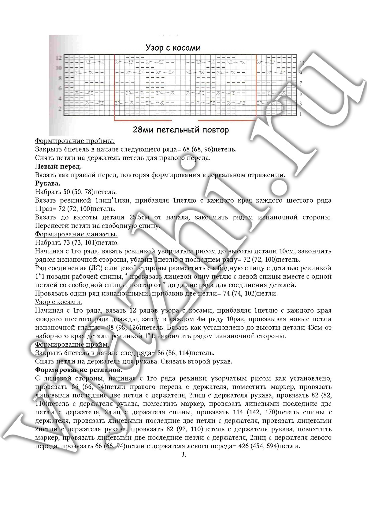 Плотность вязания: 30 п*32 р = 10 см узором с косами в нерастянутом состоянии.