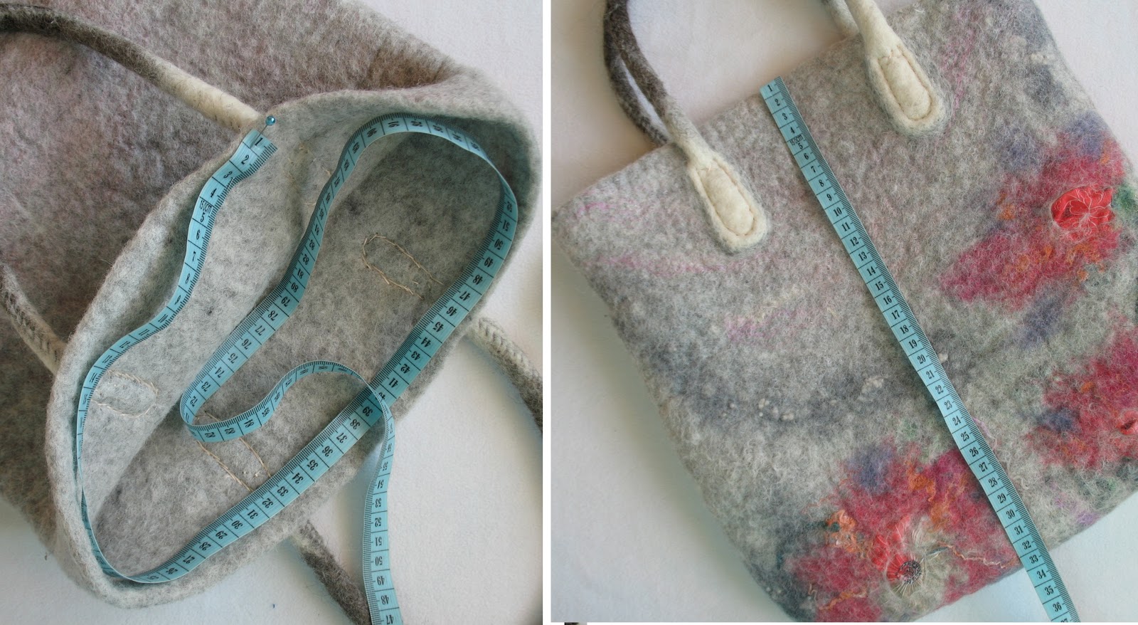 Итак, у меня есть чудесная валяная сумка, пока без подклада. Начнем с того, что снимем с сумки мерки.