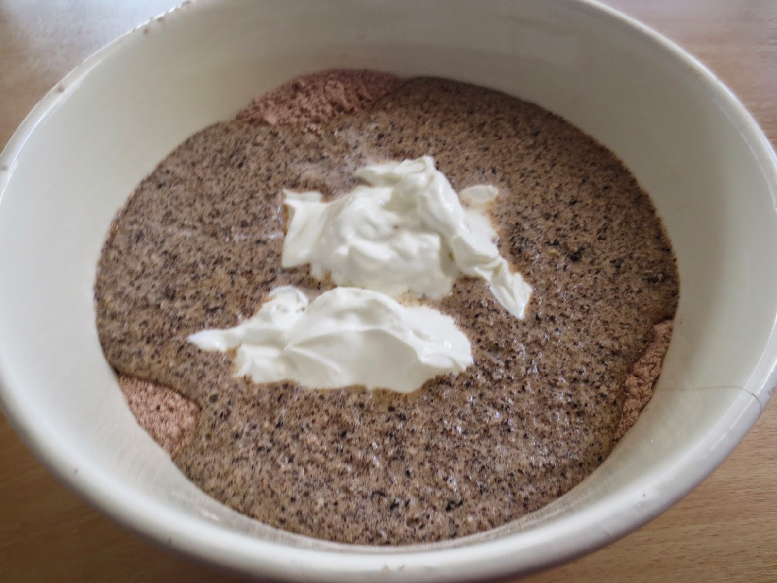 | 5.Соединяем сухие ингредиенты с яично-масляной смесью и йогуртом. |