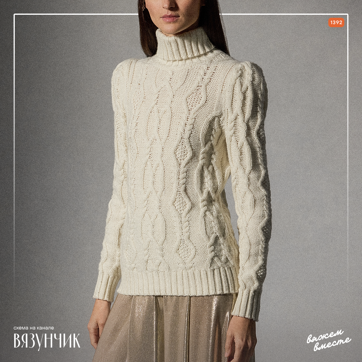 У свитера облегающий силуэт, втачной, слегка расширенный сверху рукав, высокий воротник. Такой вариант рукава подойдет не всем, но с учетом моды на широкие плечи, модель универсальна. Она подойдет практически для любого случая и любой одежды в зависимости от состава, который вы используете при вязании.
