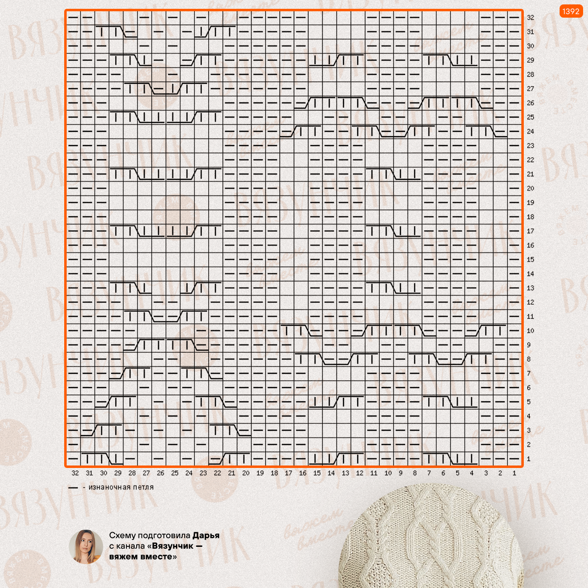 Раппорт узора — 32 петли и 32 ряда.
