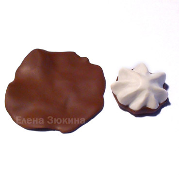 [показать] Нам потребуется: - Пластика белого цвета для начинки. - Пластика шоколадного цвета для покрытия зефира (можно использовать любой другой цвет, не обязательно использовать именно шоколад)). Шоколадный цвет можно получить, смешивая пластику нескольких цветов - красного, черного, коричневого, желтого, бежевого и т.д. Добавляйте цвета по мере надобности, чтобы получить цвет, максимально приближенный к шоколадному. Можно также взять уже готовый цвет. - Жидкая пластика для имитации поливки. - Подручные предметы для "откусывания" зефира и для придания ему формы. - Поверхность для лепки. Я использую обычные белые листы бумаги.