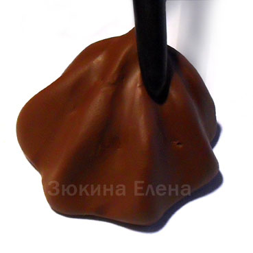 [показать] Продолжаем "прорисовывать" форму будущего изделия.Пальцами заостряем гребешки. На данном этапе не переживайте за отпечатки пальцев и не тратьте слишком много времени на идеальную форму. Впоследствии все это будет скрыто под слоем шоколадной пластики. Придав форму, положим заготовку в холодильник. Она должна отвердеть. Класть нужно именно в холодильник, а не в морозильную камеру, иначе заготовка на теплом воздухе станет влажной, и "шоколад" будет к ней плохо прилипать, образуя воздушные пузыри.