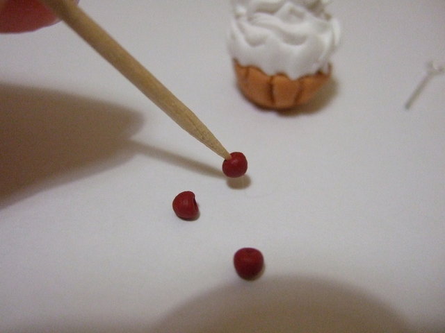 [показать] Сформируем с помощью зубочистки маленькие вишенки.