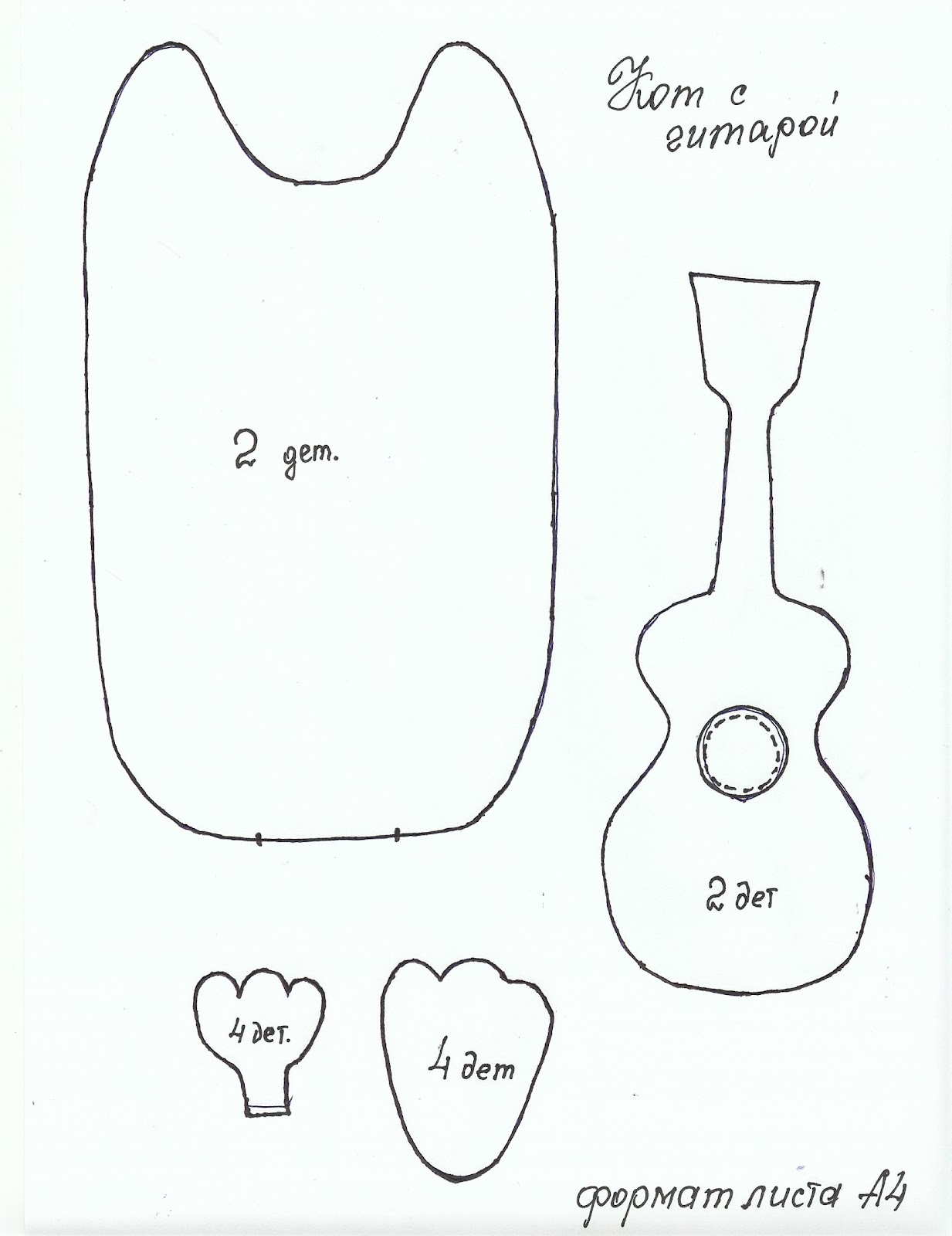 Кот, которого вы видели выше, был сшит по этой выкройке: