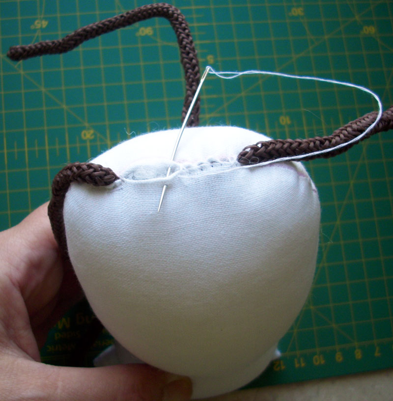 Добавив при необходимости еще немного набивки, зашиваем отверстие обметочным швом