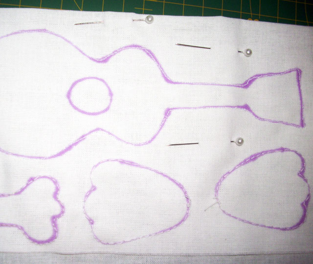 При этом детали ступней и гитары сшиваем по контуру, не оставляя отверстий для набивания.