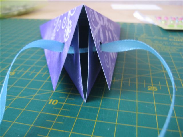 Теперь собираем коробочку и делаем отверстия для ленточки.