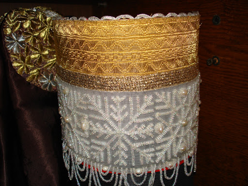 Девичий головной убор в целом представлял собой повязку в виде ленты (полотенца), оставляя непокрытой теменную часть головы. «Перевязка» (повязка) - полоска ткани с золотной вышивкой или из парчи, позумента с завязками на концах.