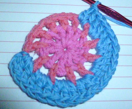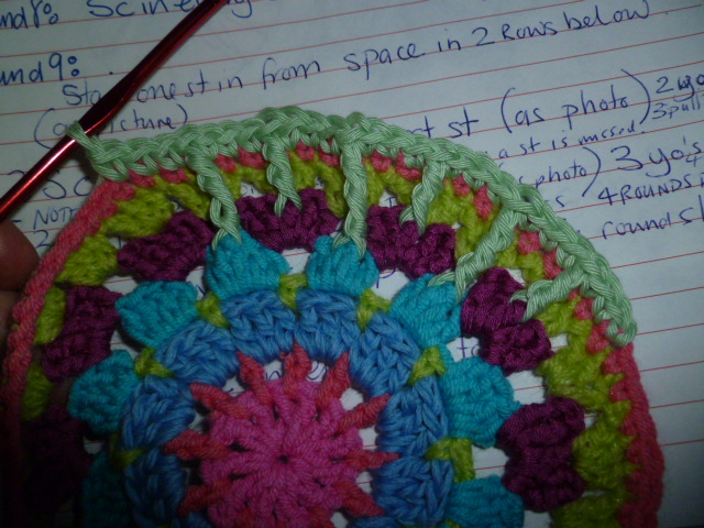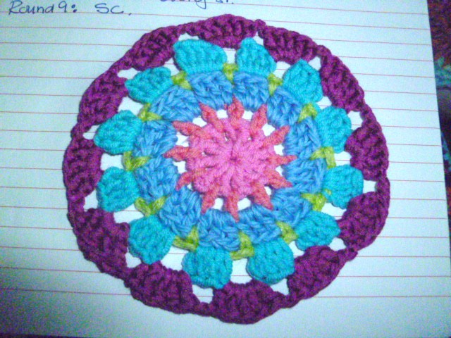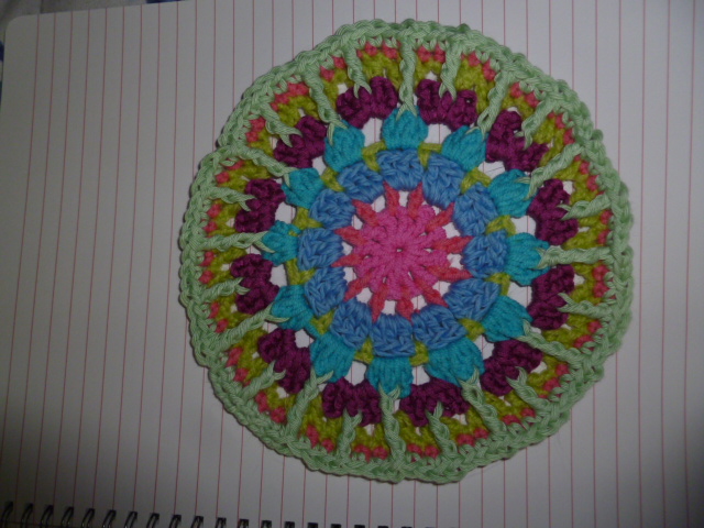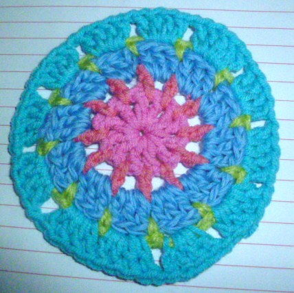 Как и было обещано картина мандалыПрежде чем я начну, есть несколько вещей, которые вы должны знать при работе POST стежка в туре,Несколько раз я использовал сообщению стежок как увеличение стежка, но в основном это замена строчки. 4мм крючок и хлопка ДК. США термины. Картина довольно долго и подробно, поэтому я разделив его на три должности сегодня и завтра для передней и задней в понедельник. Shout, если вам нужна помощь и дайте мне знать, если я написал что-то, что не имеет смысла.Я исчерпал некоторых цветов так привыкли замена от оригинального Синий и зеленый одномFair Isle Мандала шаблонСеть 4 и SL ул в кругРаунд 1: 12DC в круг, SL-й, чтобы завершить раунд [320x239]Раунд 2: 1DC в каждом пространстве с 1 канал между собой. (24 п.)