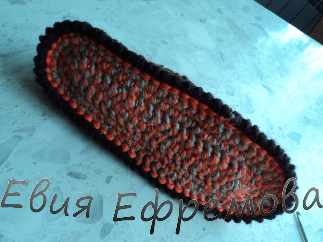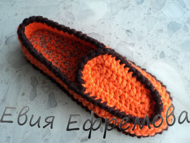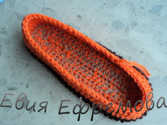 Заканчиваем третий ряд симметрично его началу с другой стороны тапочка.