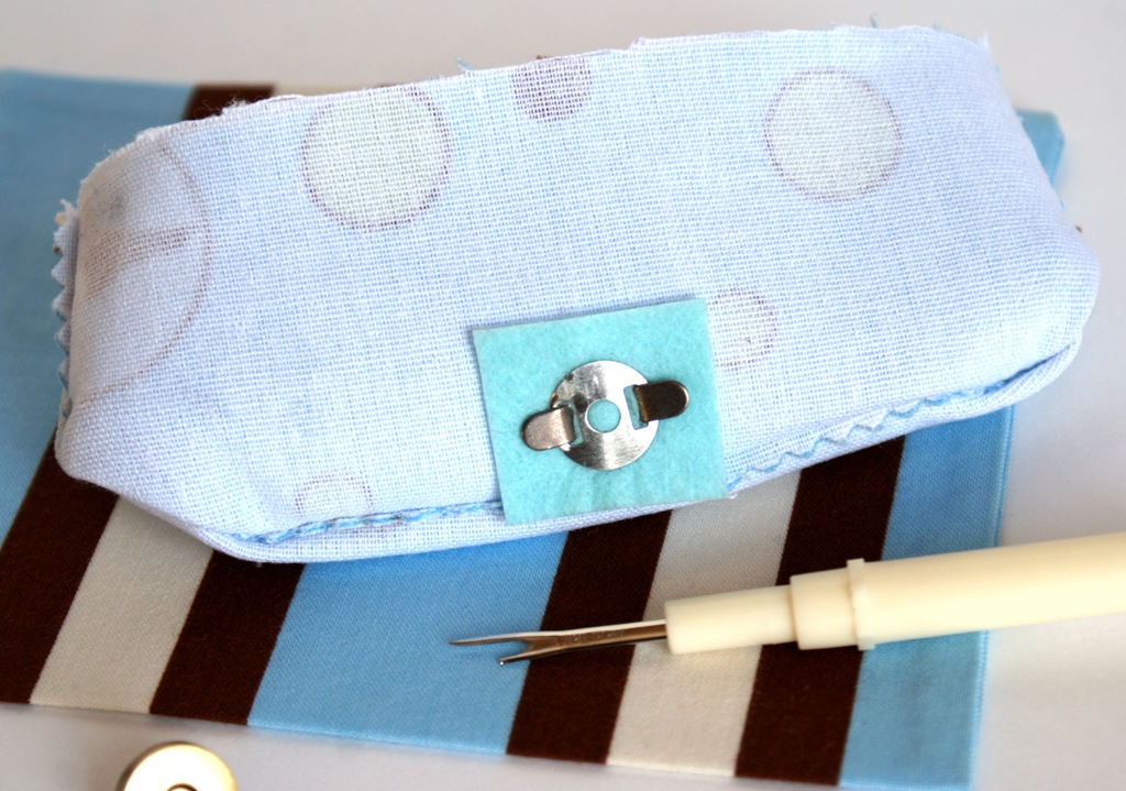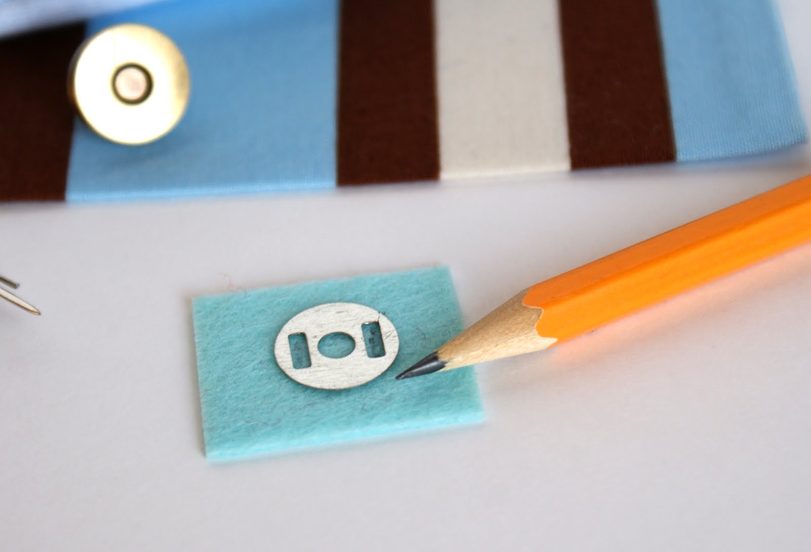Итак. Устанавливаем. Размечаем место под кнопку, намечаем и прорезаем отверстия на изделии, и на прямоугольничках фетра. Здесь как нельзя лучше подходит русская пословица "семь раз отмерь, один раз отрежь" - будьте точны!