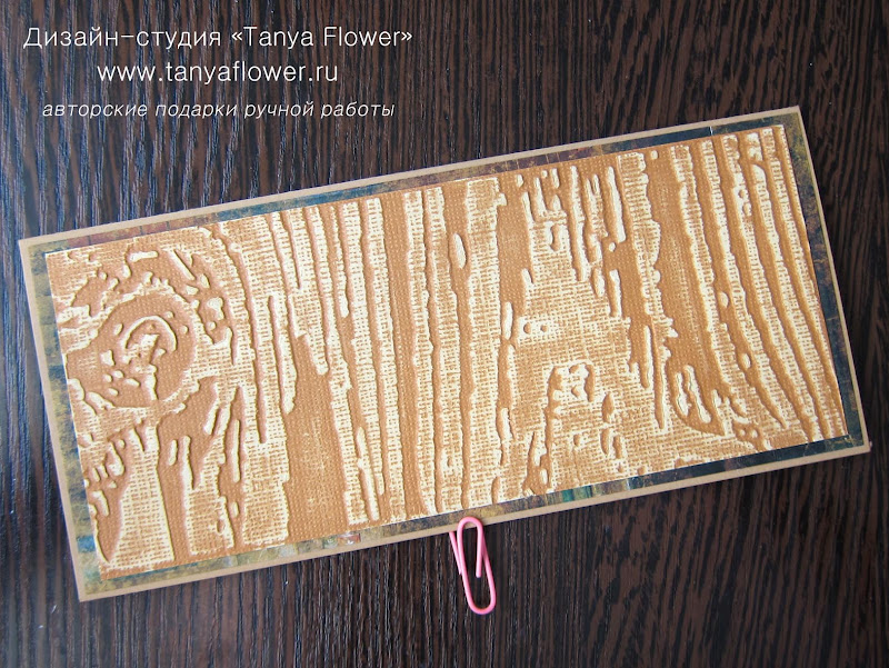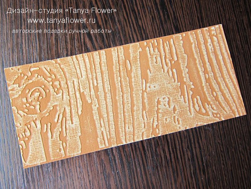 С помощью папки для тиснения и машинки я сделала фактуру дерева на специальном картоне с внутренним слоем.