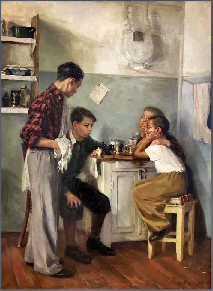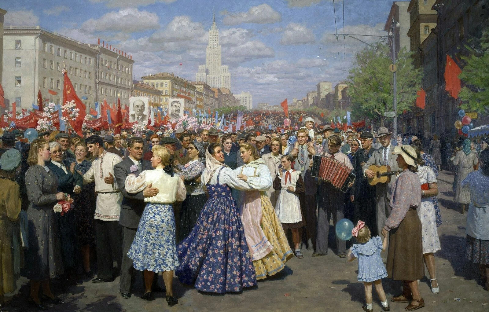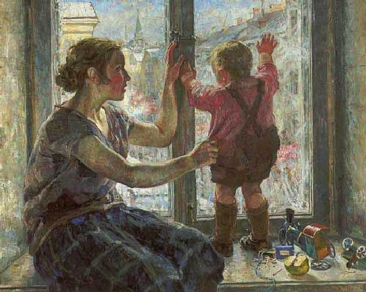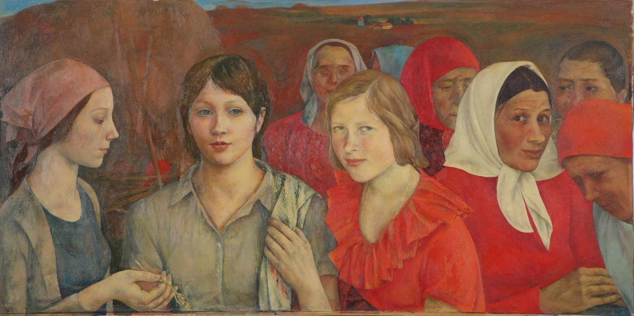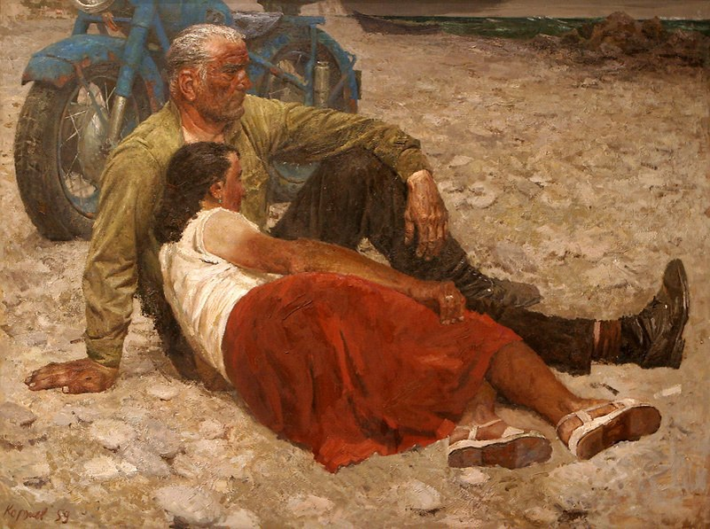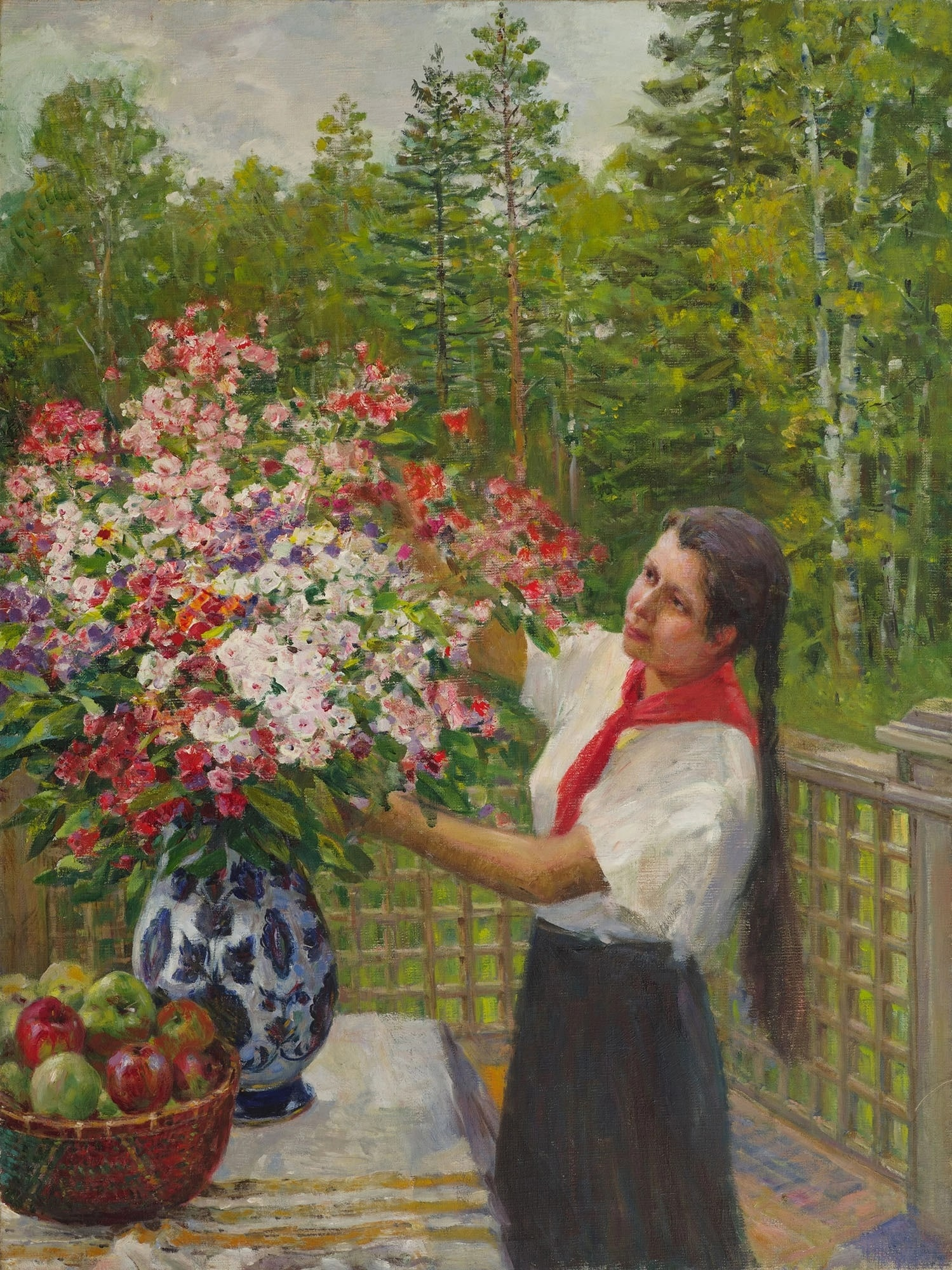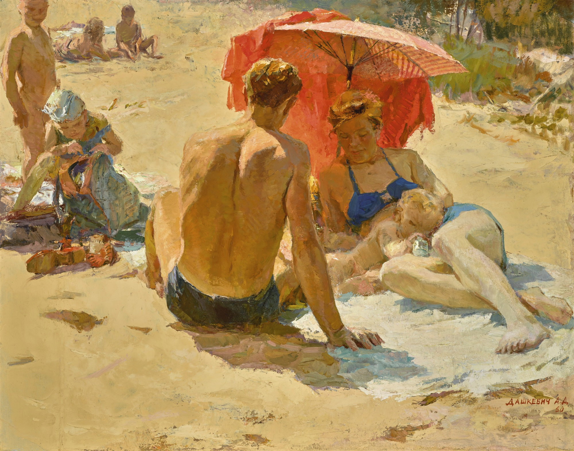 Советская живопись - это ещё и характерные для того времени элементы быта. Круглый стол, сервант или буфет, большущий комод и радиола, а может быть патефон с пластинками...Всегда очень интересно рассматривать картины, в которых остановилось время эпохи наших родителей и бабушек с дедушками. Кто-то жил в деревне, кто-то в городе. У кого-то остались воспоминания о коммунальных квартирах, которые так же нашли отражения в жанровой живописи тех времен. Из лозунга об искусстве, принадлежащем народу, вытекало и ещё одно свойство – искусство должно было стать доступным людям, независимо от уровня достатка. Картины активно тиражировались – художественные альбомы, издание которых было поставлено в Советском Союзе на поток, учебники литературы и истории, открытки, отрывные календари, иллюстрации в популярных журналах. По всей большой стране люди собирали их, развешивали вырванные листочки на стенах, создавая свои нехитрые коллекции. Сохранившиеся в памяти, у нынешних поколений эти изображения вызывают ностальгию не столько по самой советской живописи, сколько по ушедшему детству. Вся советская живопись до крайности оптимистична, ее герои кажутся суперлюдьми. В ней нет места усталости, депрессии, сомнениям – только яркое солнце, радость труда и спорта, гордость от достигнутых результатов. Картины советских художников, от которых щемит на душе – они напоминают о детстве. Итак, отправляемся назад в СССР! Вера Сорокина «Молодость». Первоначально сюжет трактовался так: девушка отстала от гонок из-за поломки, парень чинит её "коня". Но скажите сами: на гонки с букетом сирени? Скорее всего, пара просто гуляет, встретившись. И пахнет майским дождём, сиренью и разогретым асфальтом. Наверное, так пахнет счастье. Николай Ульянов «Снегири». При взгляде на стайку детворы, замершую у окна, меня охватывают забытые чувства: запах шерстяных варежек, которые раскладывали сушить на батарее; неудобство от сползающих чулок с "пажиками" - их носили все, мальчики и девочки. Картина написана в 1964 году. Тогда с местами в садик было туго, а мне повезло. Так же, как ребятишки на картине, я целый день проводил в компании сверстников. Игрушек было маловато, но они отличались исключительной прочностью. Дашкевич Александр Диомидович, "На пляже", 1960 год. Антонов Константин Михайлович, "Студентка", 1957 год. Сычков Федот Васильевич, "Жница", 1931 год. Яблонская Татьяна Ниловна, "Дома за книгой", 1954 год. Яблонская Татьяна Ниловна, "Автопортрет", 1945 год. Юон Константин Федорович, "Песни колхозной молодежи. Лигачево", 1954 год. Подляский Юрий Станиславович, "Жаркий август", 1984 год. Стожаров Владимир Федорович, "Покров", 1969 год. Павел Моисеевич Гречишкин, "Простор", 1957 год. Павел Моисеевич Гречишкин, "Озеро в облаках", 1981 год. Солодов Всеволод Сергеевич, "Дождливый день", 1958 год. Илья Сергеевич Глазунов, "Плёс. Вечер", 1952 год. Андрей Андреевич Тутунов, "Утро", 1963 год. Воронов Натан Моисеевич, "Интересная книга", 1954 год. Сорокин Сергей Александрович, "С рыбалки", 1972 год. Сорогин Геннадий Павлович, "Письмо", 1960 год. Петр Крохоняткин, "Сельский почтальон", 1959 год. Владимир Владимирович Животков, "Окно. Лето", 1970-е годы. Попов Игорь Александрович, "Июль", 1976 год. Фокин Леонид Андреевич, "Вечером", 1956 год. Киселёв Виктор Васильевич, "Мать", 1946 год. Киселёв Виктор Васильевич, "Урожай", 1960 год. Киселёв Виктор Васильевич, "Сва