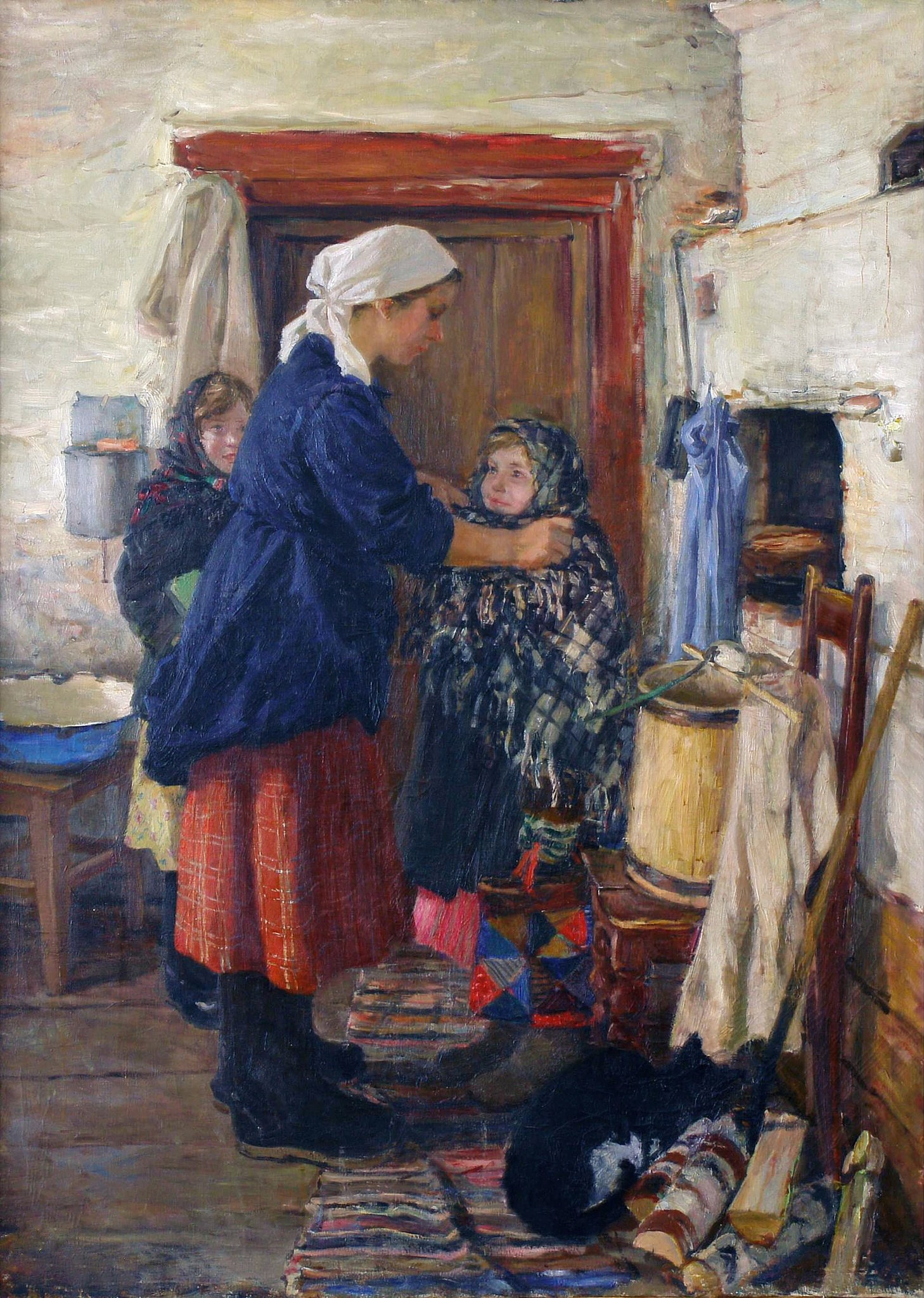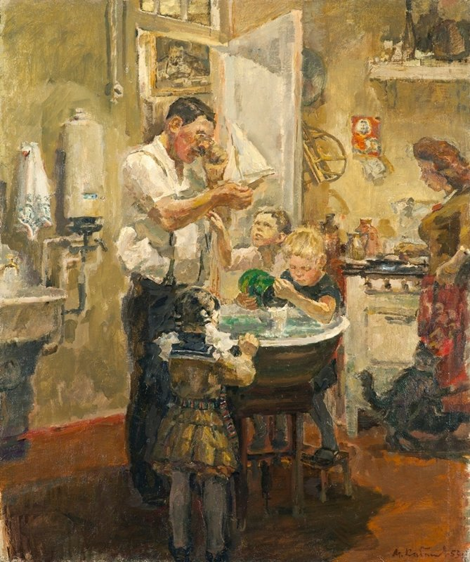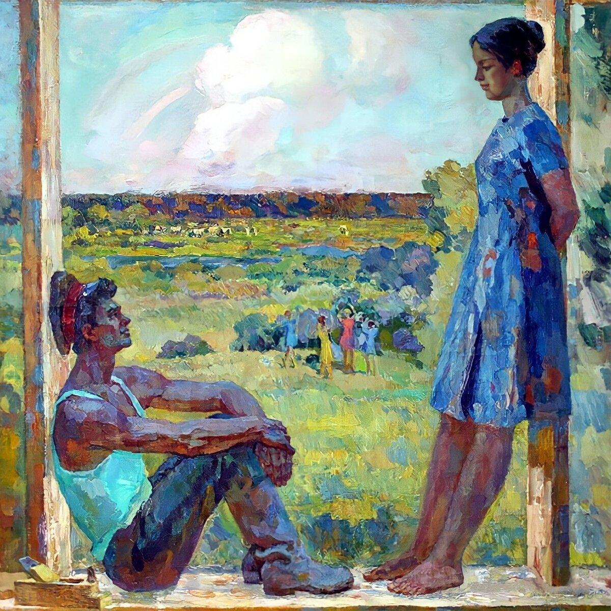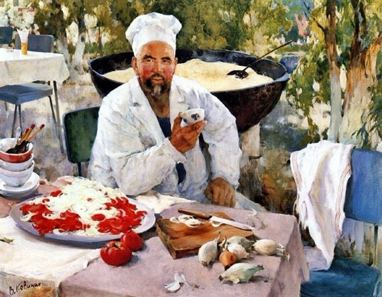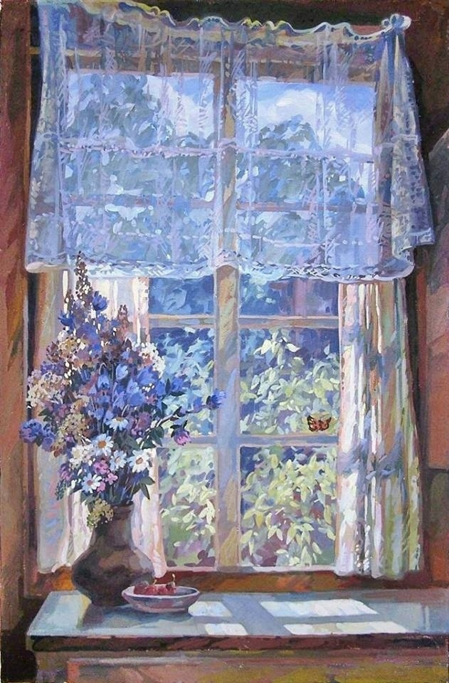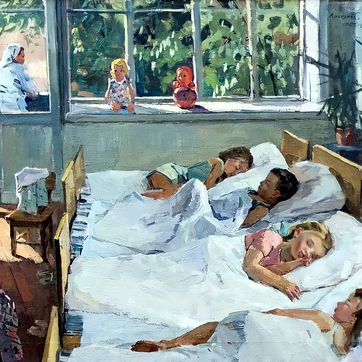Советская живопись - это ещё и характерные для того времени элементы быта. Круглый стол, сервант или буфет, большущий комод и радиола, а может быть патефон с пластинками...Всегда очень интересно рассматривать картины, в которых остановилось время эпохи наших родителей и бабушек с дедушками. Кто-то жил в деревне, кто-то в городе. У кого-то остались воспоминания о коммунальных квартирах, которые так же нашли отражения в жанровой живописи тех времен. Из лозунга об искусстве, принадлежащем народу, вытекало и ещё одно свойство – искусство должно было стать доступным людям, независимо от уровня достатка. Картины активно тиражировались – художественные альбомы, издание которых было поставлено в Советском Союзе на поток, учебники литературы и истории, открытки, отрывные календари, иллюстрации в популярных журналах. По всей большой стране люди собирали их, развешивали вырванные листочки на стенах, создавая свои нехитрые коллекции. Сохранившиеся в памяти, у нынешних поколений эти изображения вызывают ностальгию не столько по самой советской живописи, сколько по ушедшему детству. Вся советская живопись до крайности оптимистична, ее герои кажутся суперлюдьми. В ней нет места усталости, депрессии, сомнениям – только яркое солнце, радость труда и спорта, гордость от достигнутых результатов. Картины советских художников, от которых щемит на душе – они напоминают о детстве. Итак, отправляемся назад в СССР! Вера Сорокина «Молодость». Первоначально сюжет трактовался так: девушка отстала от гонок из-за поломки, парень чинит её "коня". Но скажите сами: на гонки с букетом сирени? Скорее всего, пара просто гуляет, встретившись. И пахнет майским дождём, сиренью и разогретым асфальтом. Наверное, так пахнет счастье. Николай Ульянов «Снегири». При взгляде на стайку детворы, замершую у окна, меня охватывают забытые чувства: запах шерстяных варежек, которые раскладывали сушить на батарее; неудобство от сползающих чулок с "пажиками" - их носили все, мальчики и девочки. Картина написана в 1964 году. Тогда с местами в садик было туго, а мне повезло. Так же, как ребятишки на картине, я целый день проводил в компании сверстников. Игрушек было маловато, но они отличались исключительной прочностью. Дашкевич Александр Диомидович, "На пляже", 1960 год. Антонов Константин Михайлович, "Студентка", 1957 год. Сычков Федот Васильевич, "Жница", 1931 год. Яблонская Татьяна Ниловна, "Дома за книгой", 1954 год. Яблонская Татьяна Ниловна, "Автопортрет", 1945 год. Юон Константин Федорович, "Песни колхозной молодежи. Лигачево", 1954 год. Подляский Юрий Станиславович, "Жаркий август", 1984 год. Стожаров Владимир Федорович, "Покров", 1969 год. Павел Моисеевич Гречишкин, "Простор", 1957 год. Павел Моисеевич Гречишкин, "Озеро в облаках", 1981 год. Солодов Всеволод Сергеевич, "Дождливый день", 1958 год. Илья Сергеевич Глазунов, "Плёс. Вечер", 1952 год. Андрей Андреевич Тутунов, "Утро", 1963 год. Воронов Натан Моисеевич, "Интересная книга", 1954 год. Сорокин Сергей Александрович, "С рыбалки", 1972 год. Сорогин Геннадий Павлович, "Письмо", 1960 год. Петр Крохоняткин, "Сельский почтальон", 1959 год. Владимир Владимирович Животков, "Окно. Лето", 1970-е годы. Попов Игорь Александрович, "Июль", 1976 год. Фокин Леонид Андреевич, "Вечером", 1956 год. Киселёв Виктор Васильевич, "Мать", 1946 год. Киселёв Виктор Васильевич, "Урожай", 1960 год. Киселёв Виктор Васильевич, "Сва