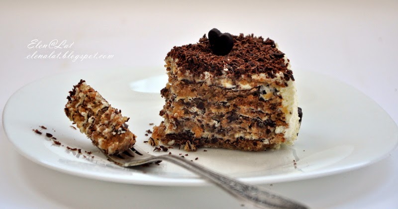 Торт весь обмазать взбитыми сливками без шоколада. Сверху обсыпать торт крупно натертым темным шоколадом. Поставить в холодильник. Дать постоять пару часов и все, можно звать всех к столу. Необычайно вкусно!!!