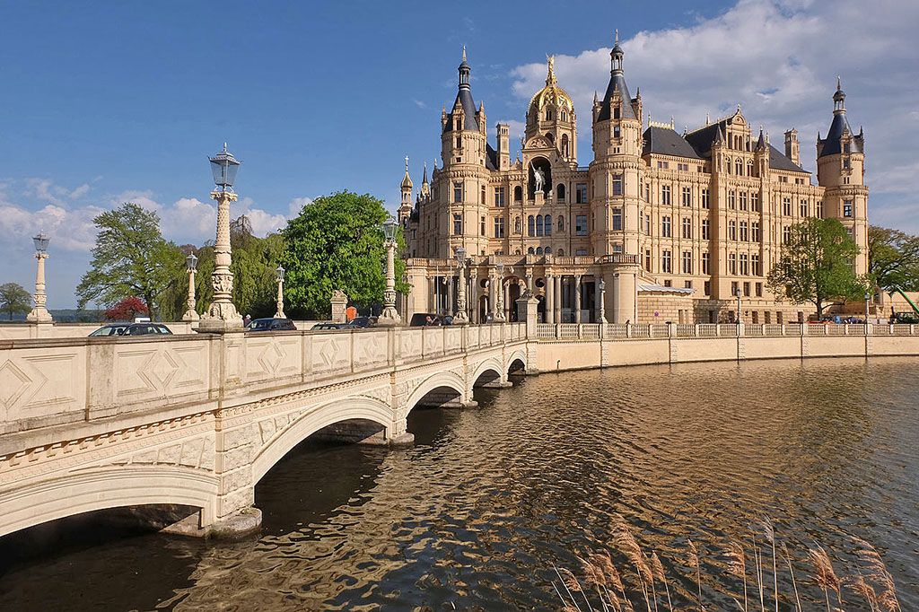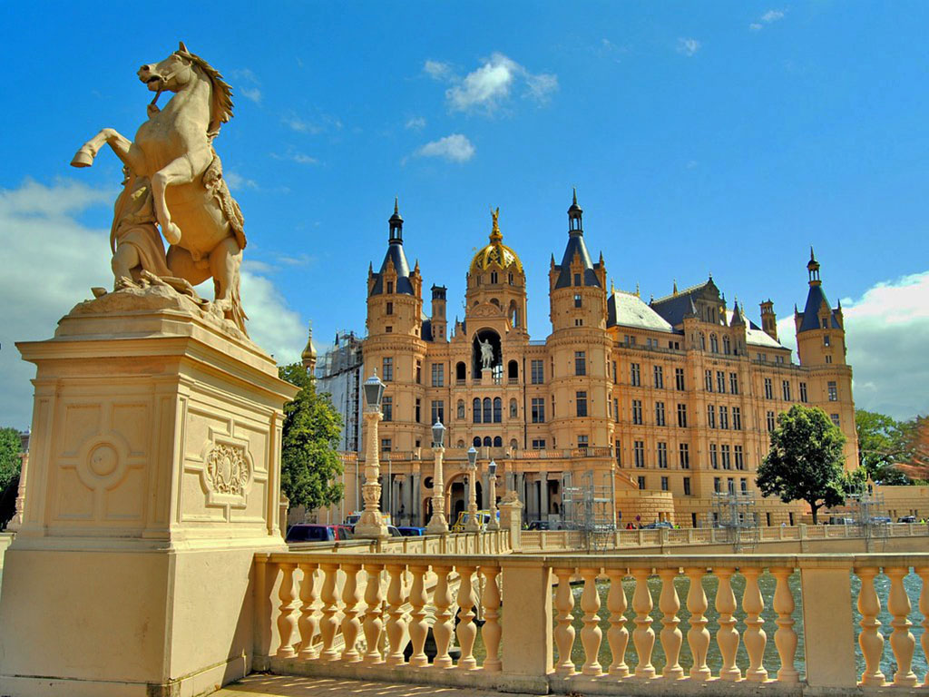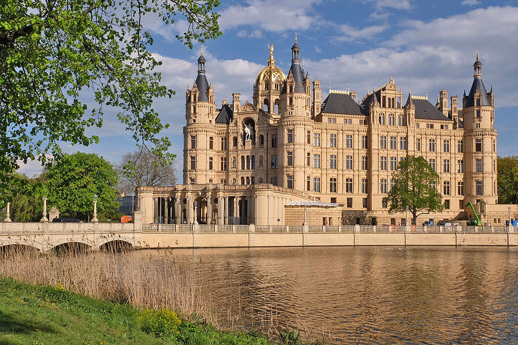 Окруженный прекрасным ландшафтом, состоящим из озер и лесов, Шверинский замок выглядит как сказочный замок. Это ориентир для города Шверин и даже больше для всего Мекленбург-Передняя Померания. Примерно 100 лет назад он был герцогской резиденцией великого князя Мекленбург-Шверинского. Сегодня это все еще центр власти в Мекленбург-Передней Померании, потому что это место парламента. Вы можете посетить музей в Шверинском замке.