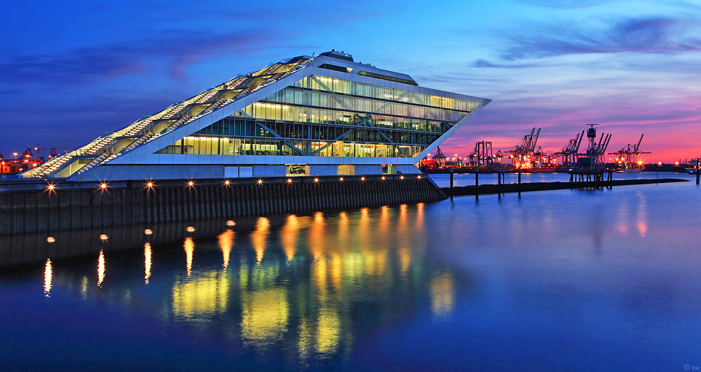 Словно нос ультрасовременного судна возвышается над Эльбой Докланд (Dockland) — самое необычное в городе сооружение в форме параллелограмма, появившееся в 2006 году на улице Van-der-Smissen-Str. 9. Шестиэтажное здание с двойным стеклянным фасадом, поддерживаемое конструкцией из стальных рам, располагает площадью 7 000 м2, используемой для офисных помещений. Два панорамных лифта связывающих друг с другом этажи Докланда, возведенного на пирсе посреди воды. На крышу постройки ведут 136 ступеней с наклоном 60°. Преодолевших их ждет вознаграждение — впечатляющий вид гавани, открывающийся со смотровой площадки, расположенной на высоте 47 м.