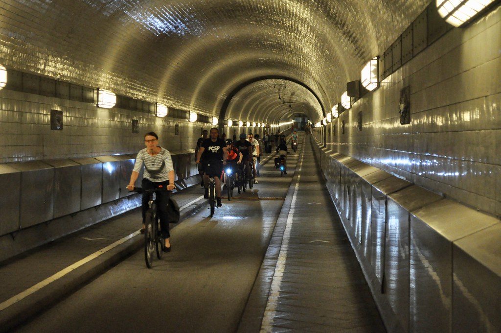 В 1907 году стремительное развитие порта стало причиной начала строительства тоннеля, призванного обеспечить связь между северным и южным берегами Эльбы. В 1911 году сооружение протяженностью 426 м, располагающееся на глубине 23 м, отпраздновало свое открытие. Передвигаться по подземному ходу могли не только пешеходы — размеры двух трубообразных конструкций позволяли проехать экипажам, запряженным лошадьми. И хотя в 1975 году под рекой появился новый современный путепровод, старый тоннель и сегодня продолжает выполнять транспортную функцию.
