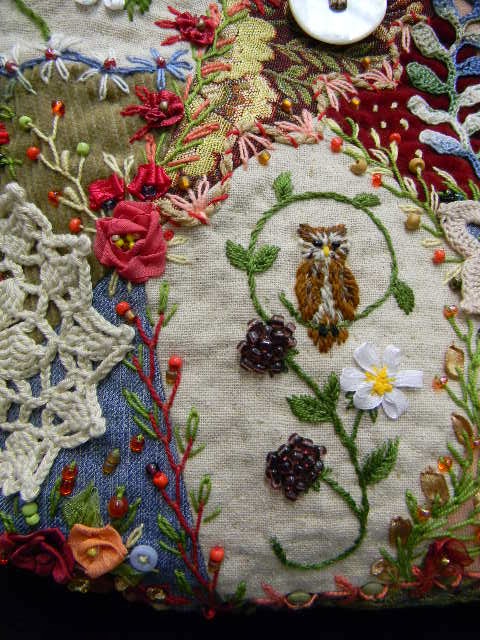 Следующий фрагмент-мотив из книги по объемной вышивке-сова,сидящая на веточке ежевики...обожаю этот простенький,примитивный рисунок!