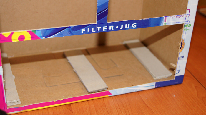 На следующем этапе сделала полочки для верхних ящиков. Вариантов, как это сделать великое множество. Получился вот такой каркас.