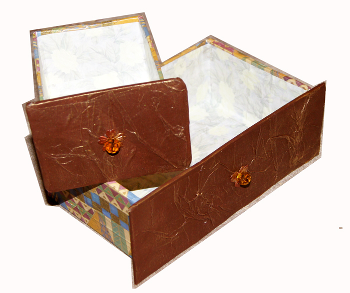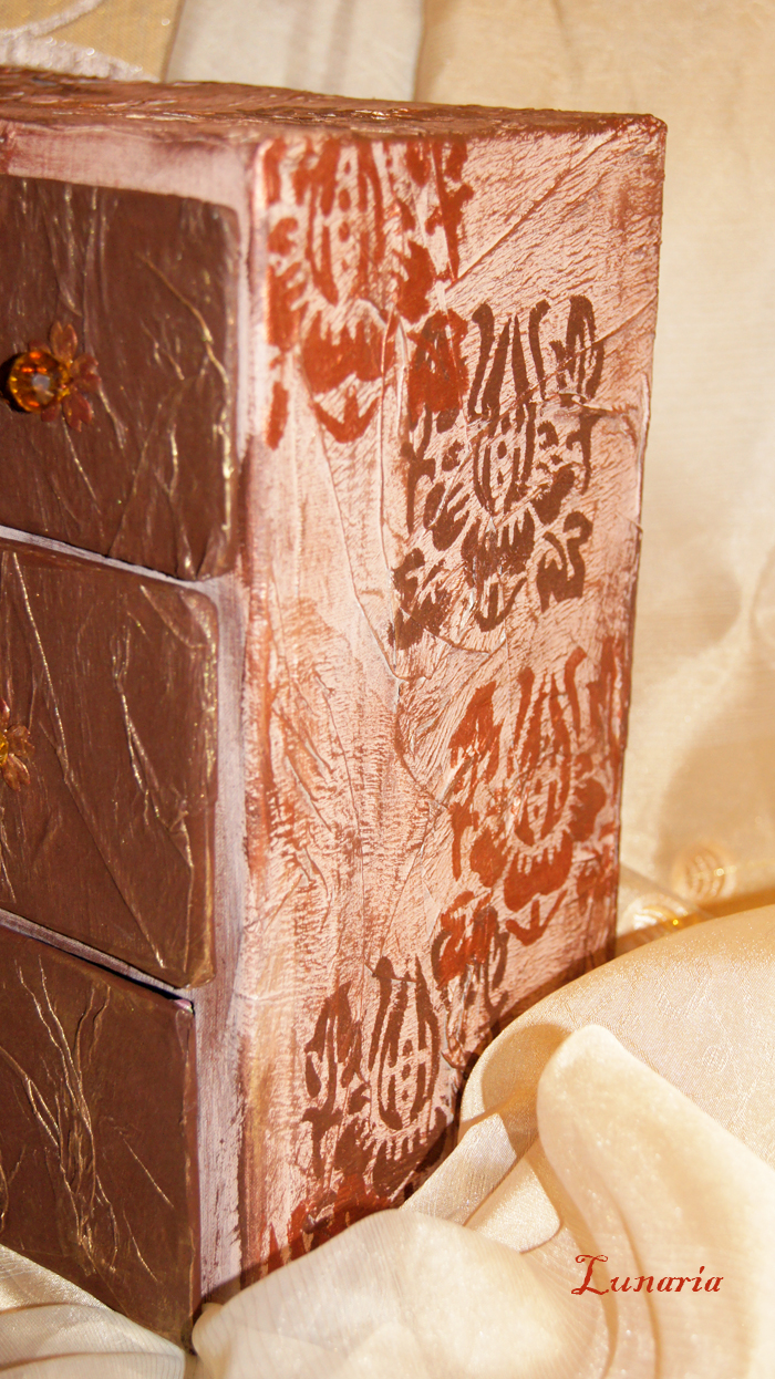 В Интернете много мастер-классов по изготовлению комодиков, из фанеры, спичечных коробков и картона. Я решила попробовать сделать небольшой комодик из картонной коробки, взятой за основу.