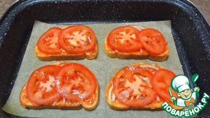 Следом - тонкие ломтики помидора, которые слегка подсаливаю.