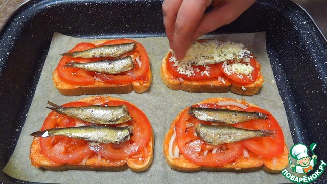 Рецепт «Горячие бутерброды со шпротами»: