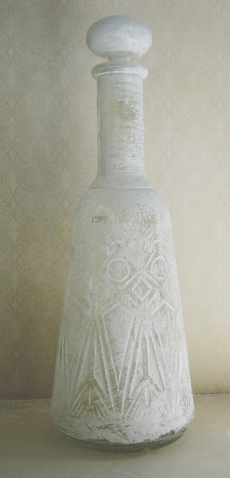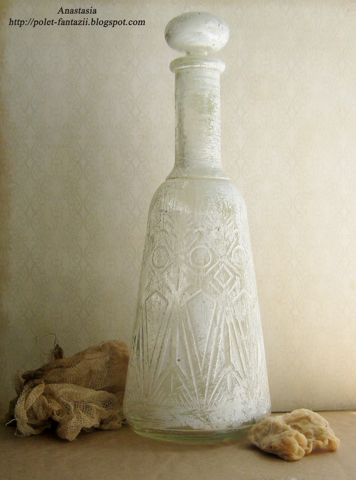 Вот что у нас должно получиться на данном этапе. Если Вам кажется, что слишком затерли бутылку, то покройте эти участки снова акрилом и после высыхания придайте желаемый вид)) Не бойтесь экспериментировать и не стремитесь к излишней аккуратности. Не забывайте что мы создаем винтажный предмет, глядя на который можно будет смело сказать, что над ним постаралось время)))!!!