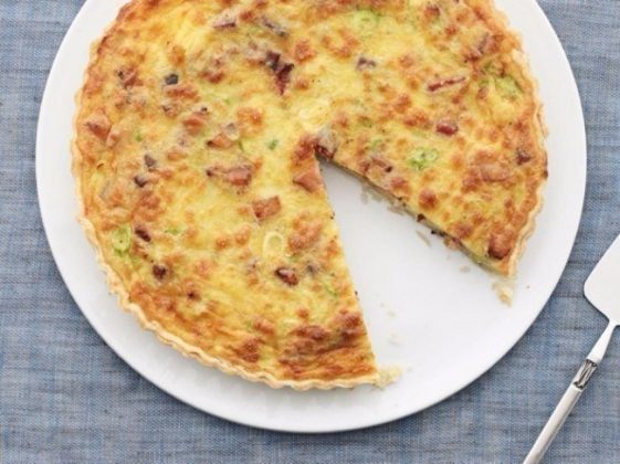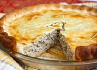 Смешиваем все указанные для теста ингредиенты и заливаем им начинку. Выпекаем в духовке при температуре 180 градусов около 50 минут.
