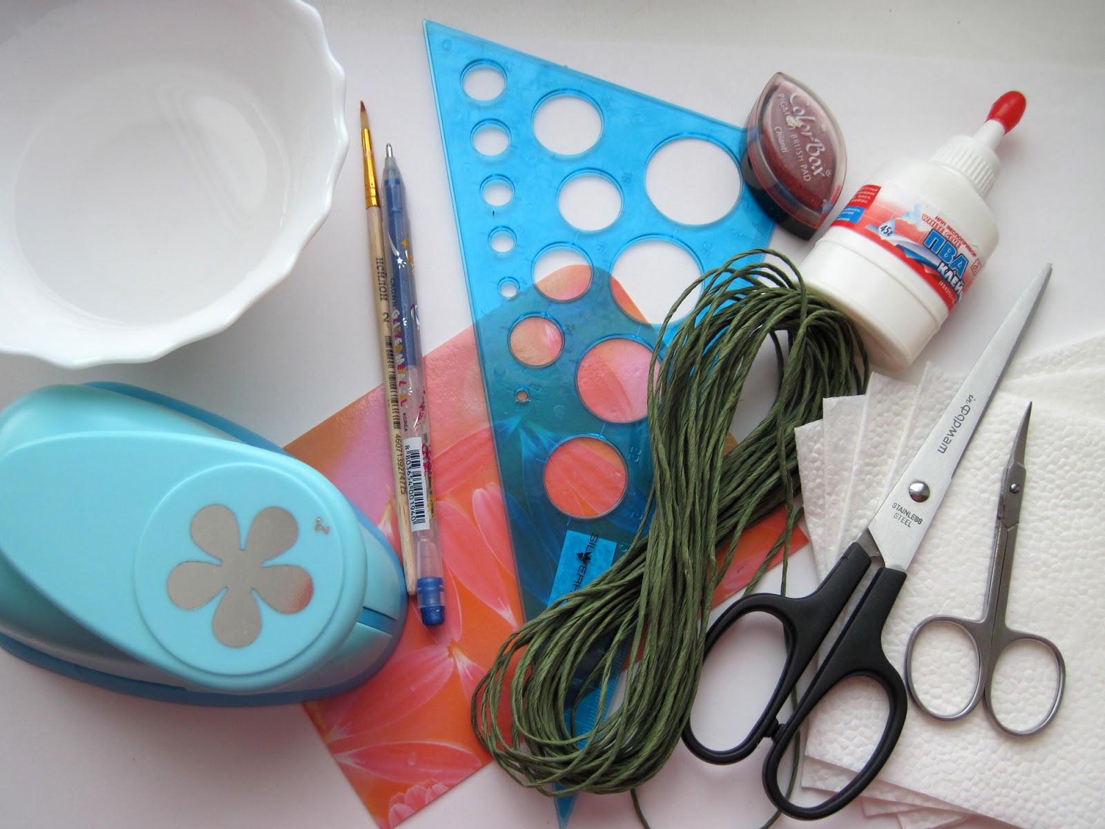 - емкость с водой + салфетки; - клей ПВА; - шило или ножнички;