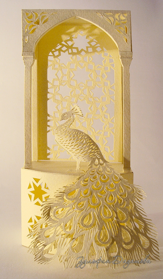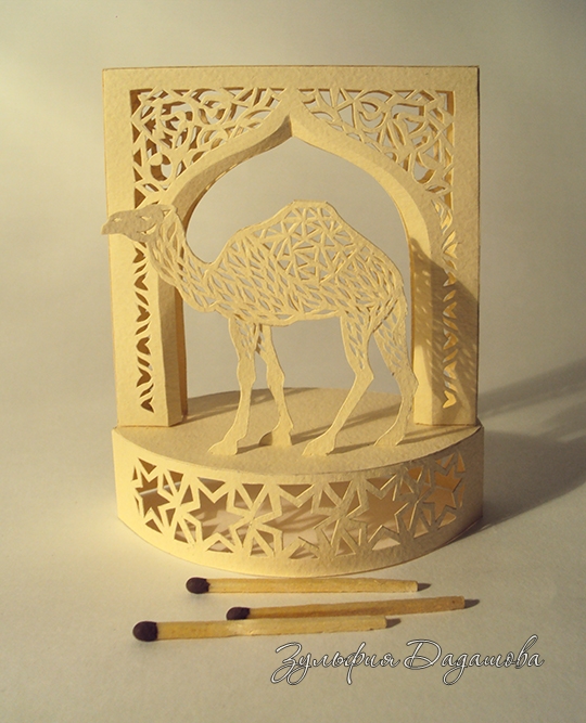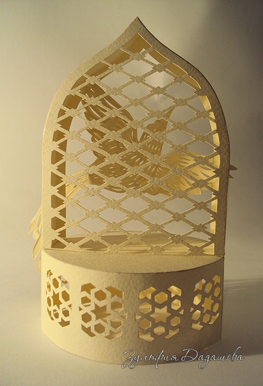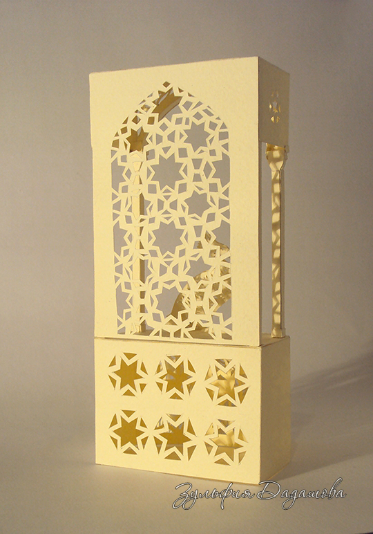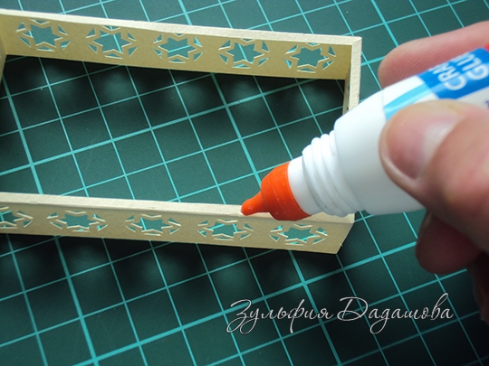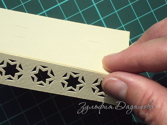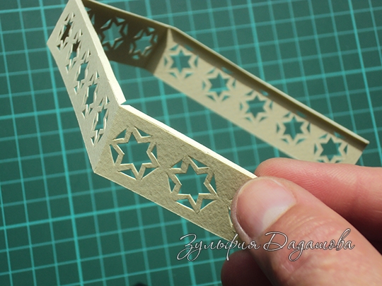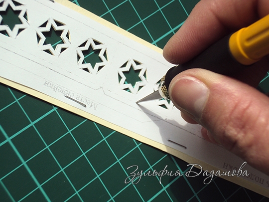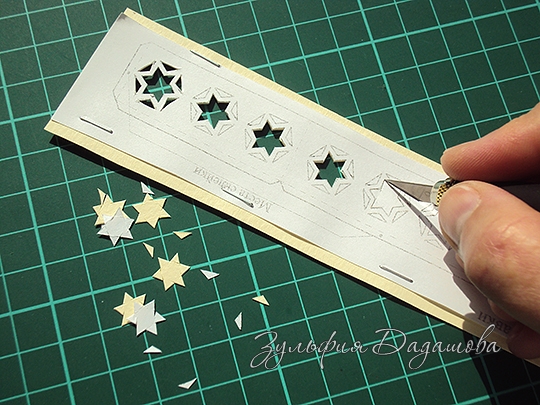 Вырезать узоры боковой детали подставки. При вырезании звездочек - направление ножа от внешних углов к середине звездочки.