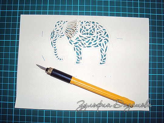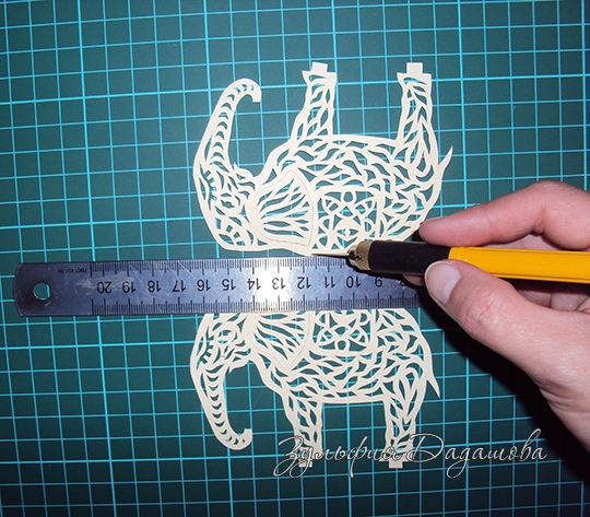 Вырезать внутренний рисунок. Контур ушей вырезать в последнюю очередь.