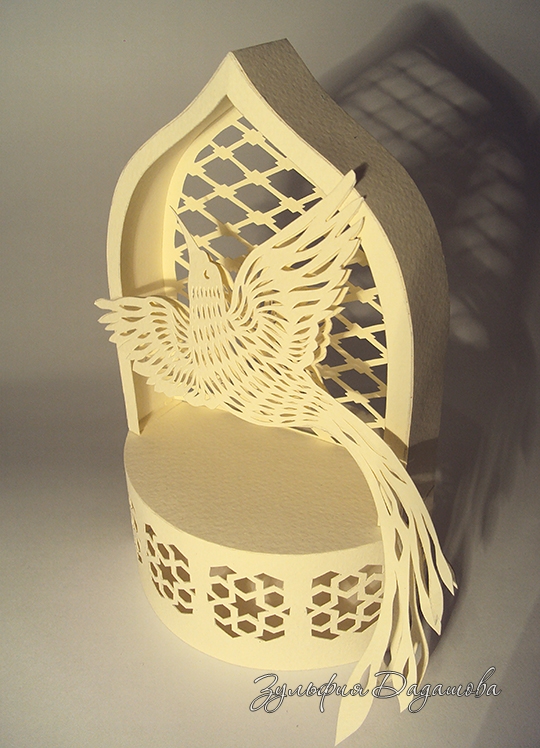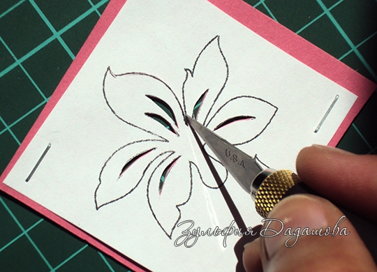 Прикрепить схему подставки к бумаге для вырезания. Все длинные прямые линии вырезать при помощи металлической линейки.
