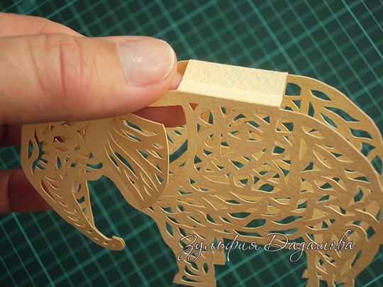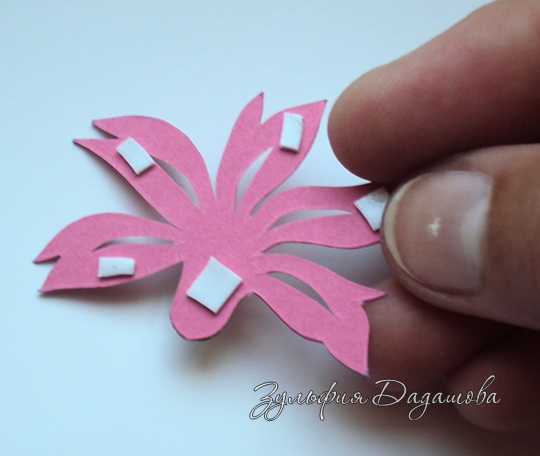 Приклейте на обратную сторону вырезанных деталей кусочки двухстороннего скотча на вспененной основе.