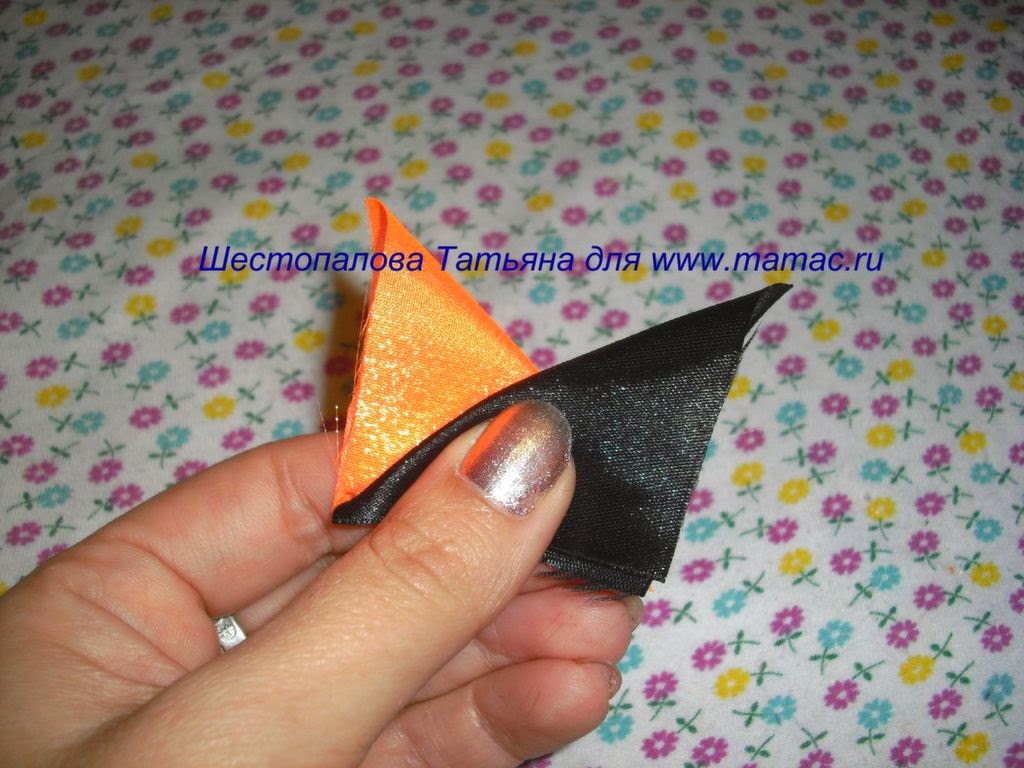 - атласные ленты двух оттенков: оранжевого и черного.