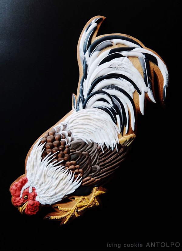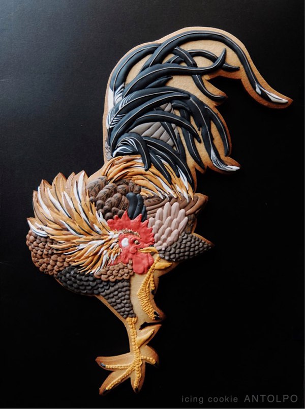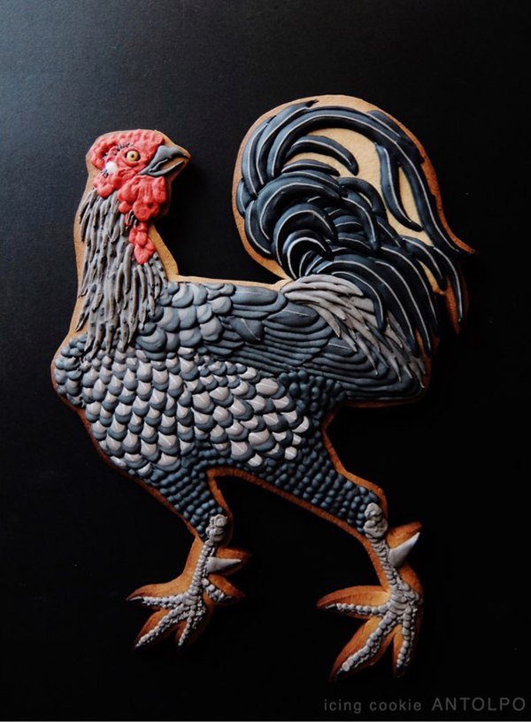 Вот её съедобные петушки по мотивам картин «Петух и гортензии», «Нандина и петух», «Куры».