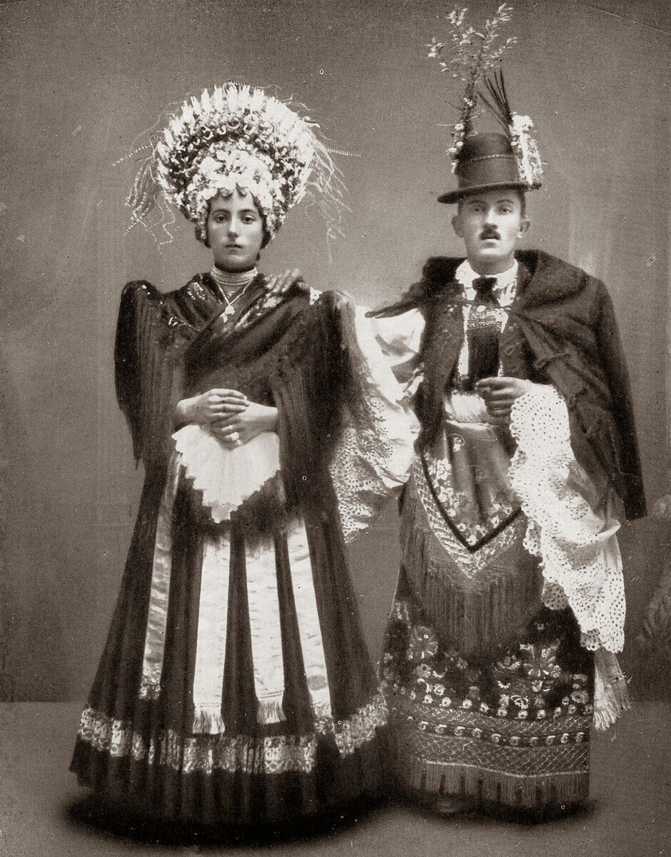 В данной подборке хочу показать вам несколько фотографий невест и женихов конца 19 - начала 20 века, в довольно экстравагантных по нынешним меркам национальных свадебных костюмах. Уверен, что они способны рассмешить или удивить нас, современников, но тем не менее, каждый из этих снимков — это окно в прошлое. Так что давайте уже смотреть!
