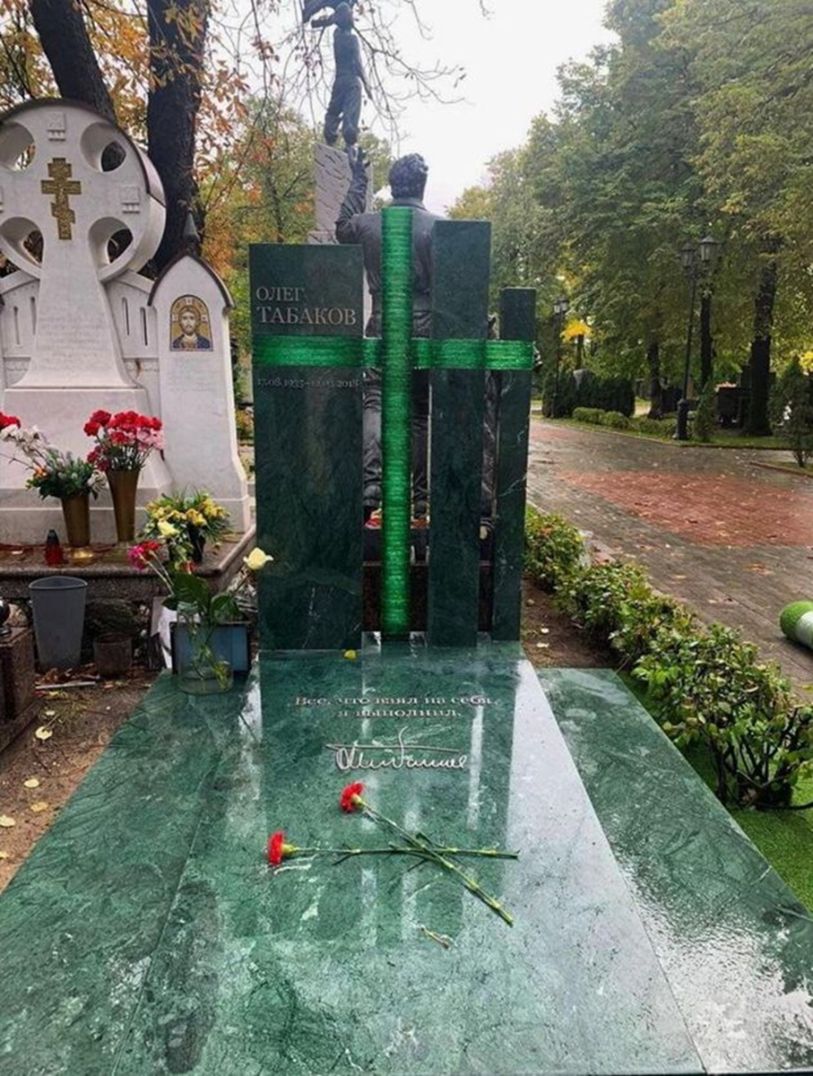 Автором проекта уникального надгробия из индийского мрамора и зеленого хрусталя стал художник Николай Симонов, который работал с Олегом Павловичем Табаковым в МХТ.