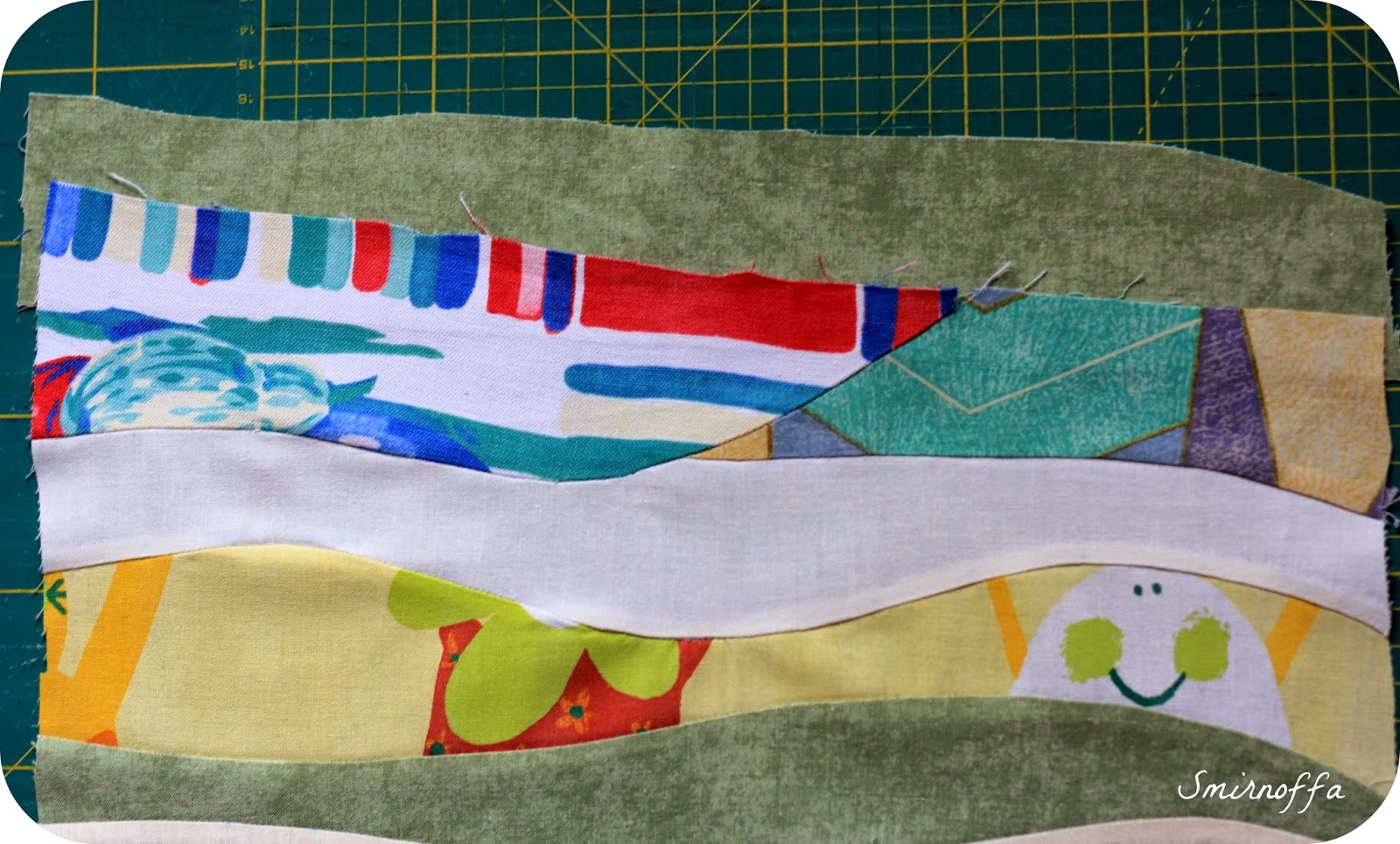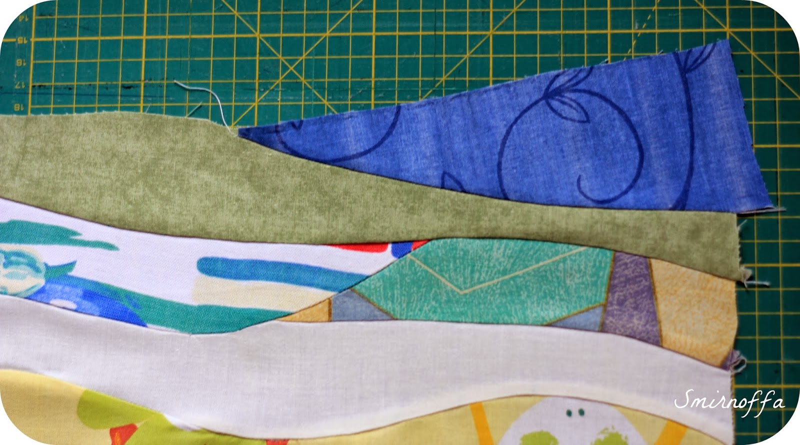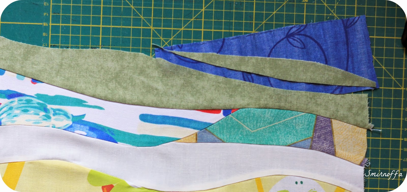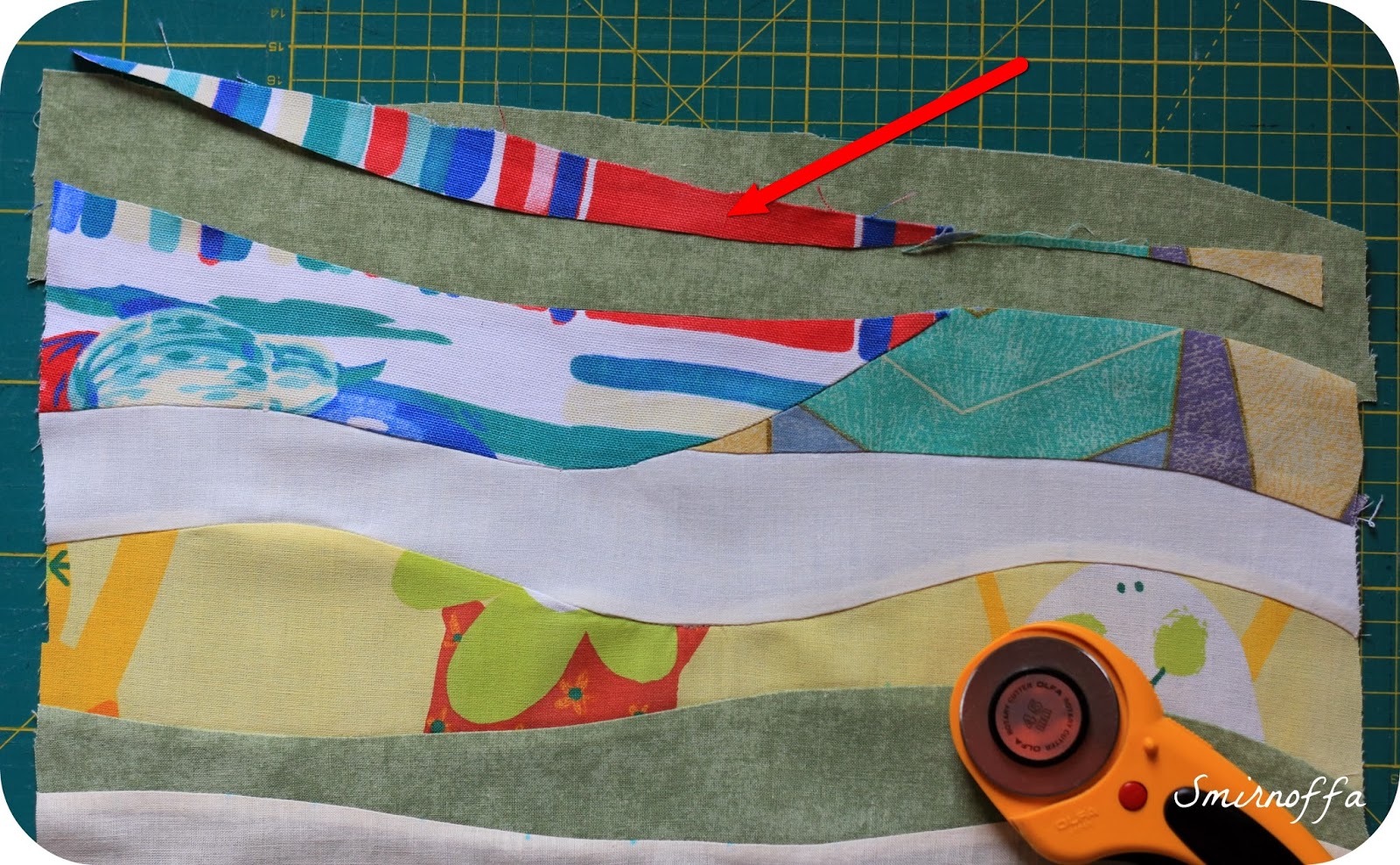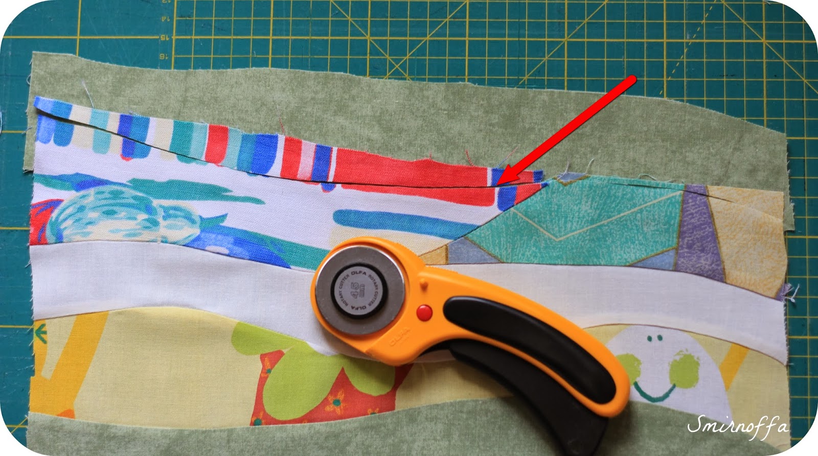 Поэтому пришили кусочек, выложили полотно ровненько на мат, лишние хвостики обрезали.