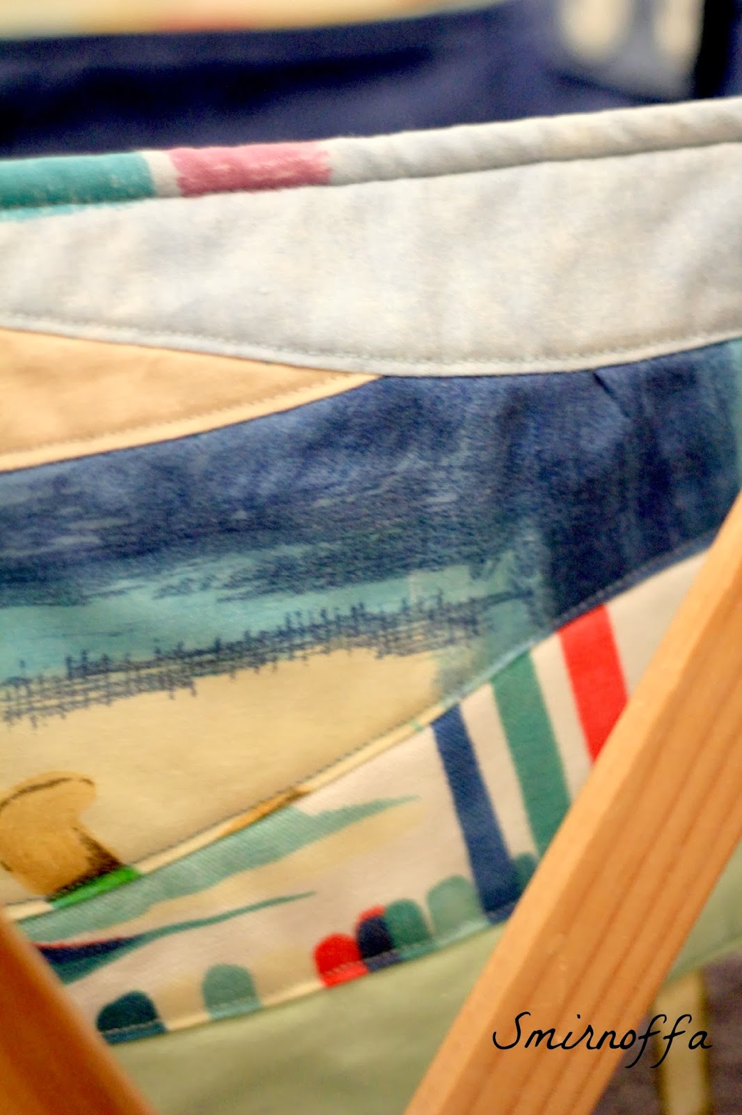А простегиваю я вообще очень просто. Вдоль линий швов с той стороны, куда припуски заглажены. На обычном ходу машины. Опять же любимая лапка G позволяет контролировать расстояние от строчки до шва.