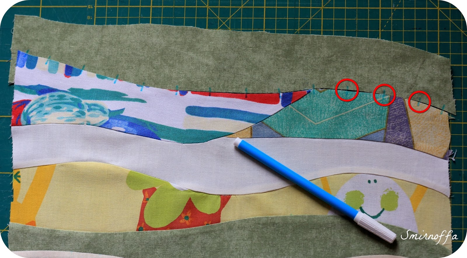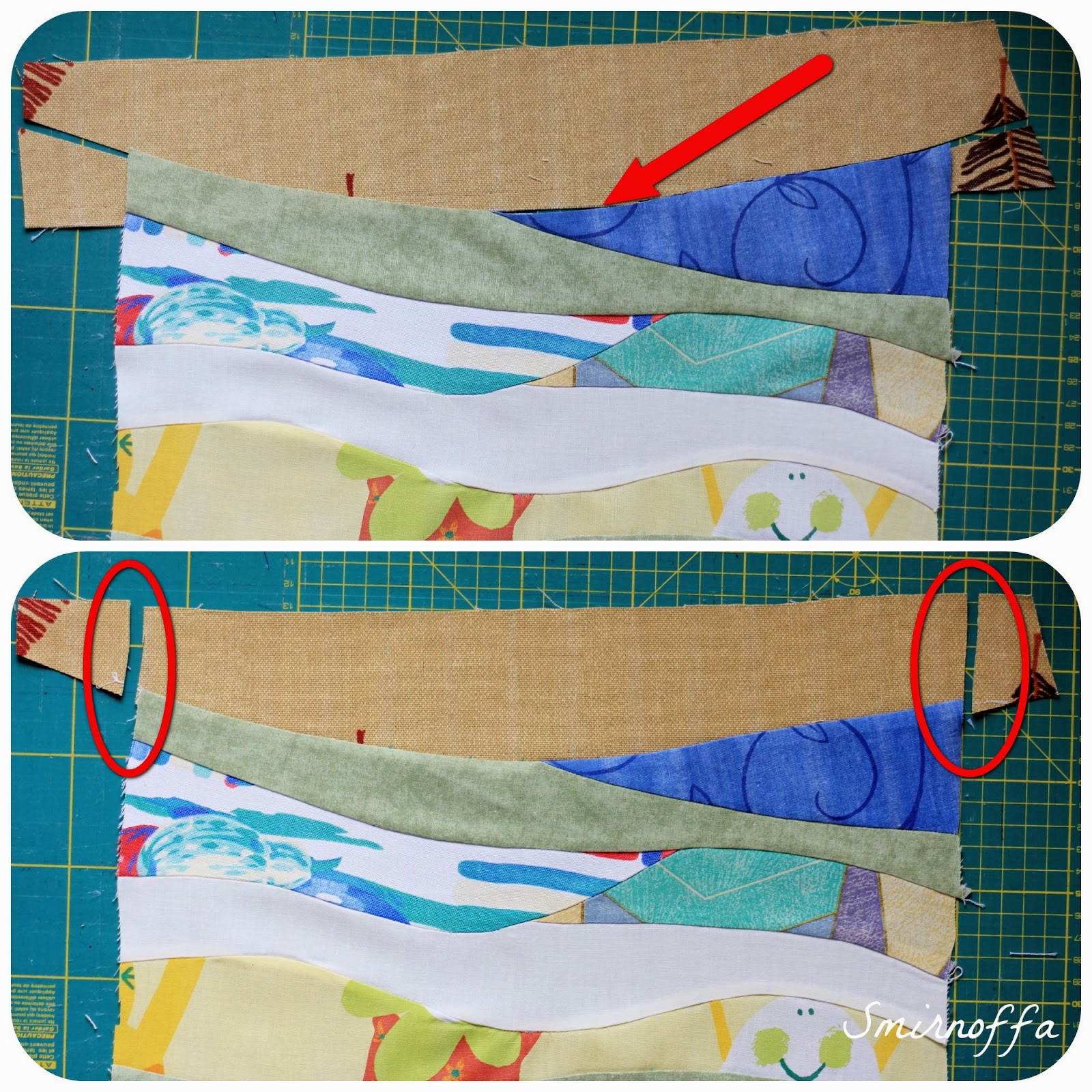 Теперь удаляем снизу излишки от обрезки второй ткани. С метками уже не страшно что-то сдвинуть.
