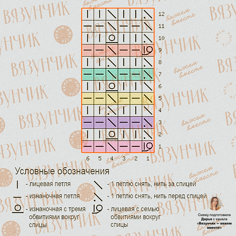 Схема в конце статьи дана для лицевых и изнаночных рядов при вязании с поворотом полотна.