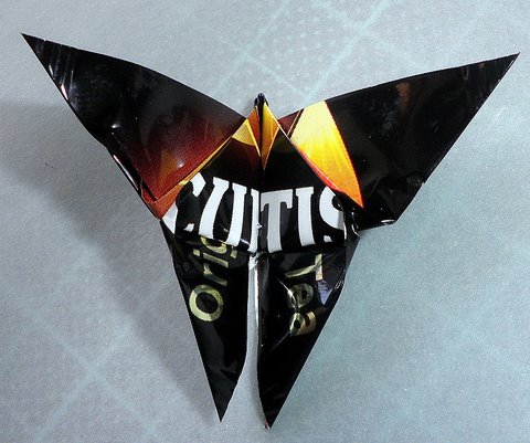 Бабочка -оригами из конфетной обертки |