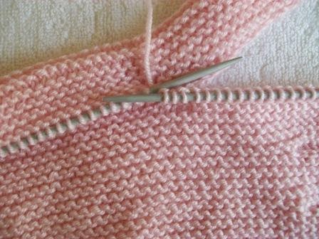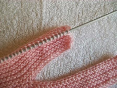 Набираем на спицы обычным набором столько петель, сколько в длину Ваша перчатка от начала манжета до кончика мизинца. И вяжем платочной вязкой полотно на ширину мизинца платочной вязкой.